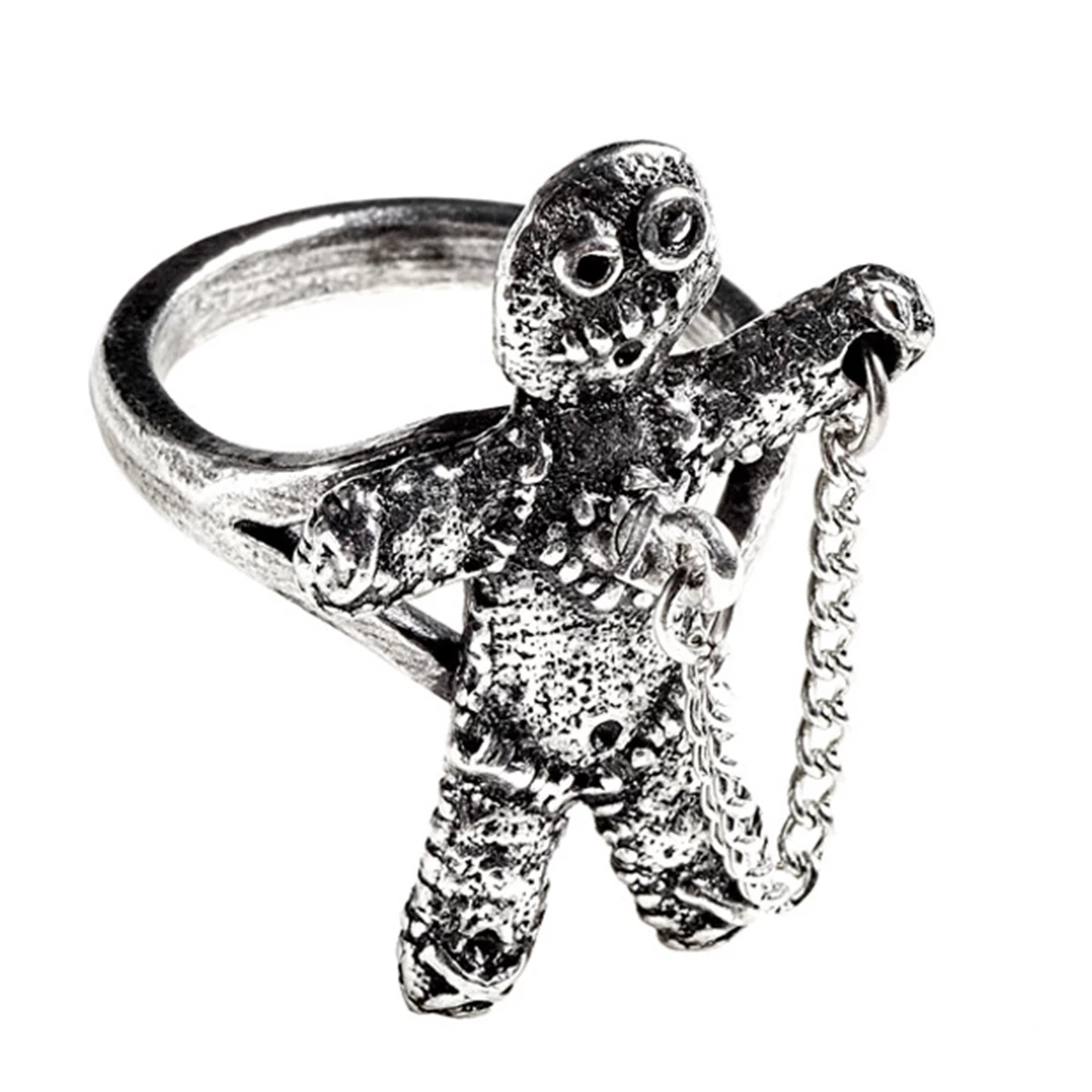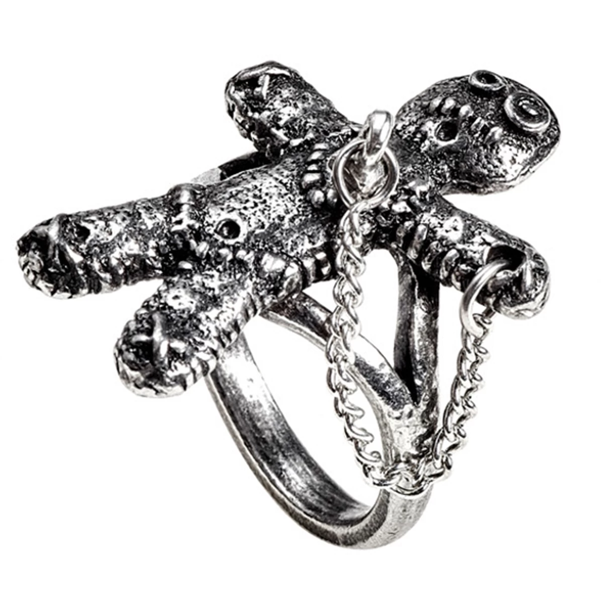 âą Un anneau en Ă©tain d’une poupĂ©e vaudou miniature.
