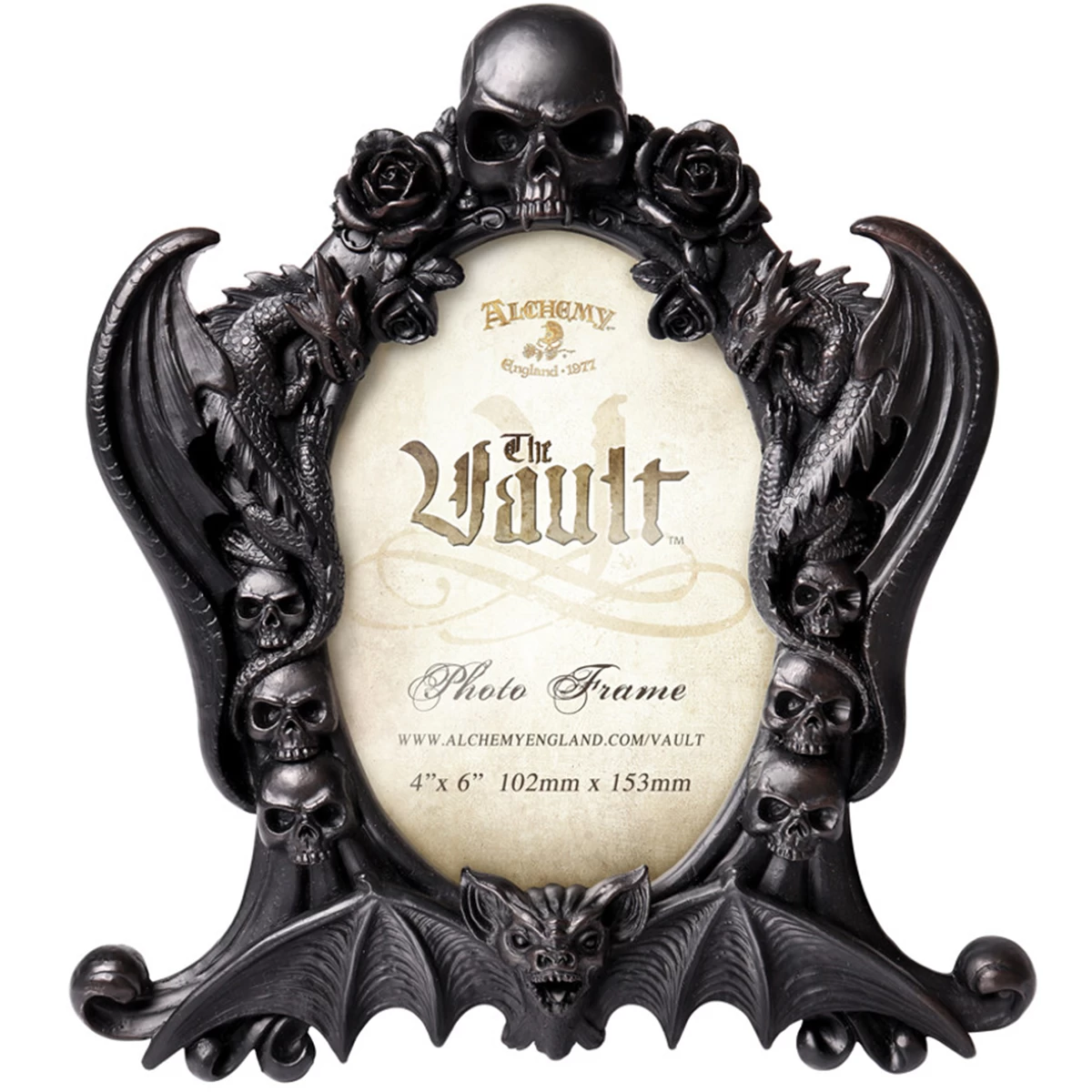 âą Cadre photo gothique avec motif chauve-souris, crĂąne et dragon.