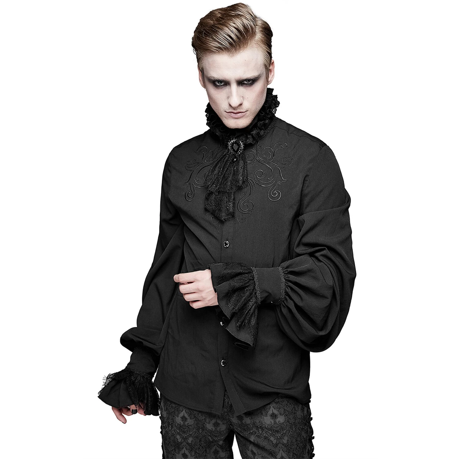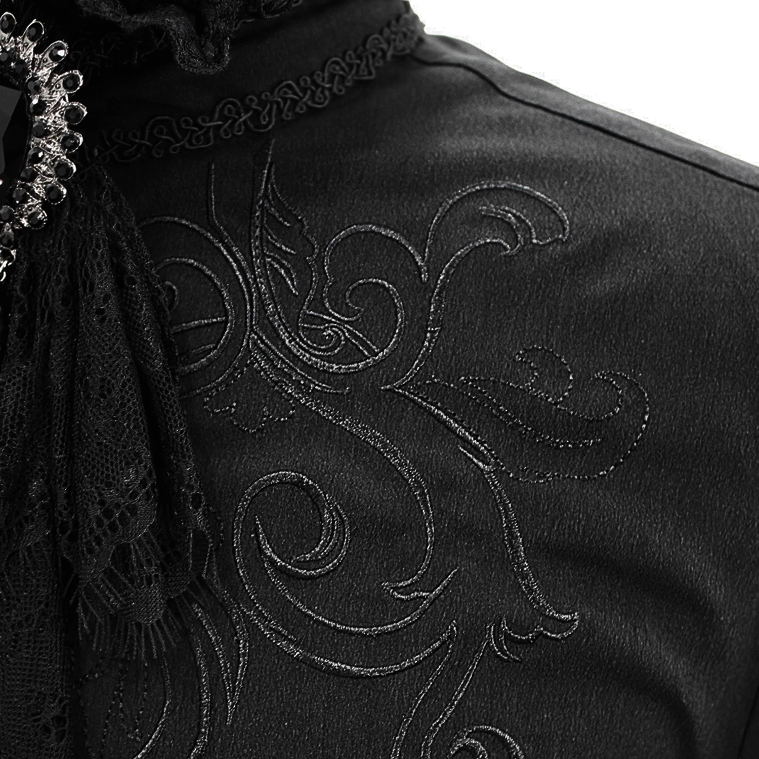 • Poignets boutonnés, garnis d’un tressage noir et ornés de dentelle
