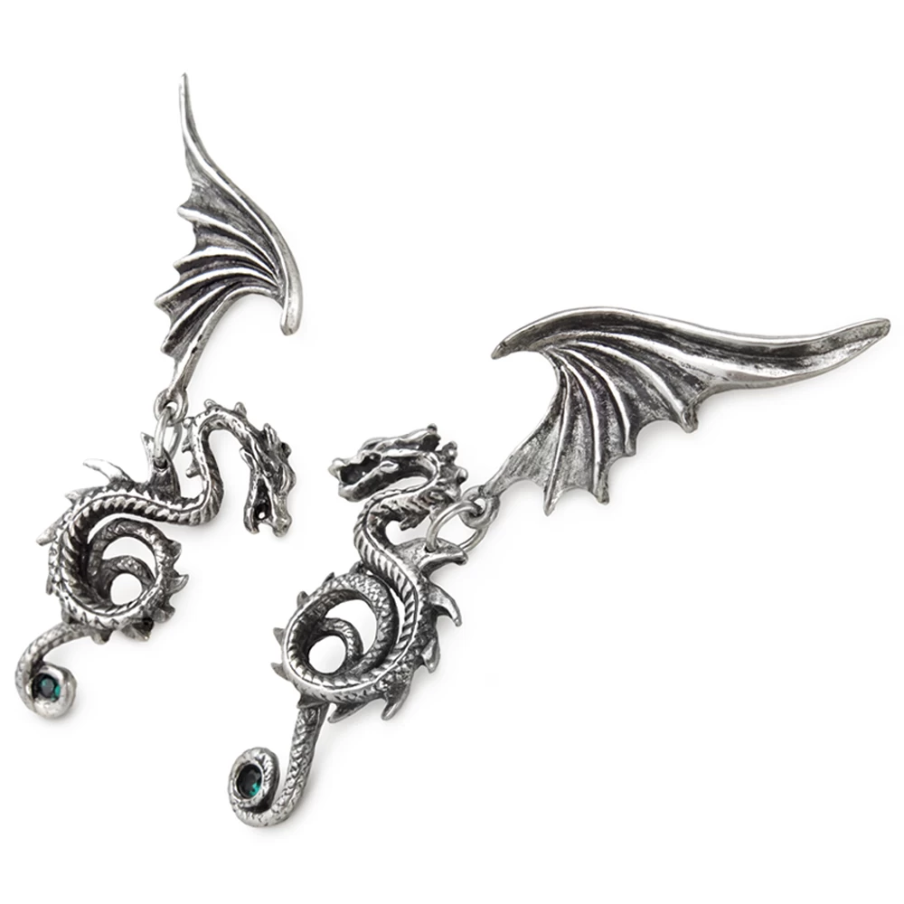 Sur chaque boucle d’oreille, un Dragon articulé se balance.