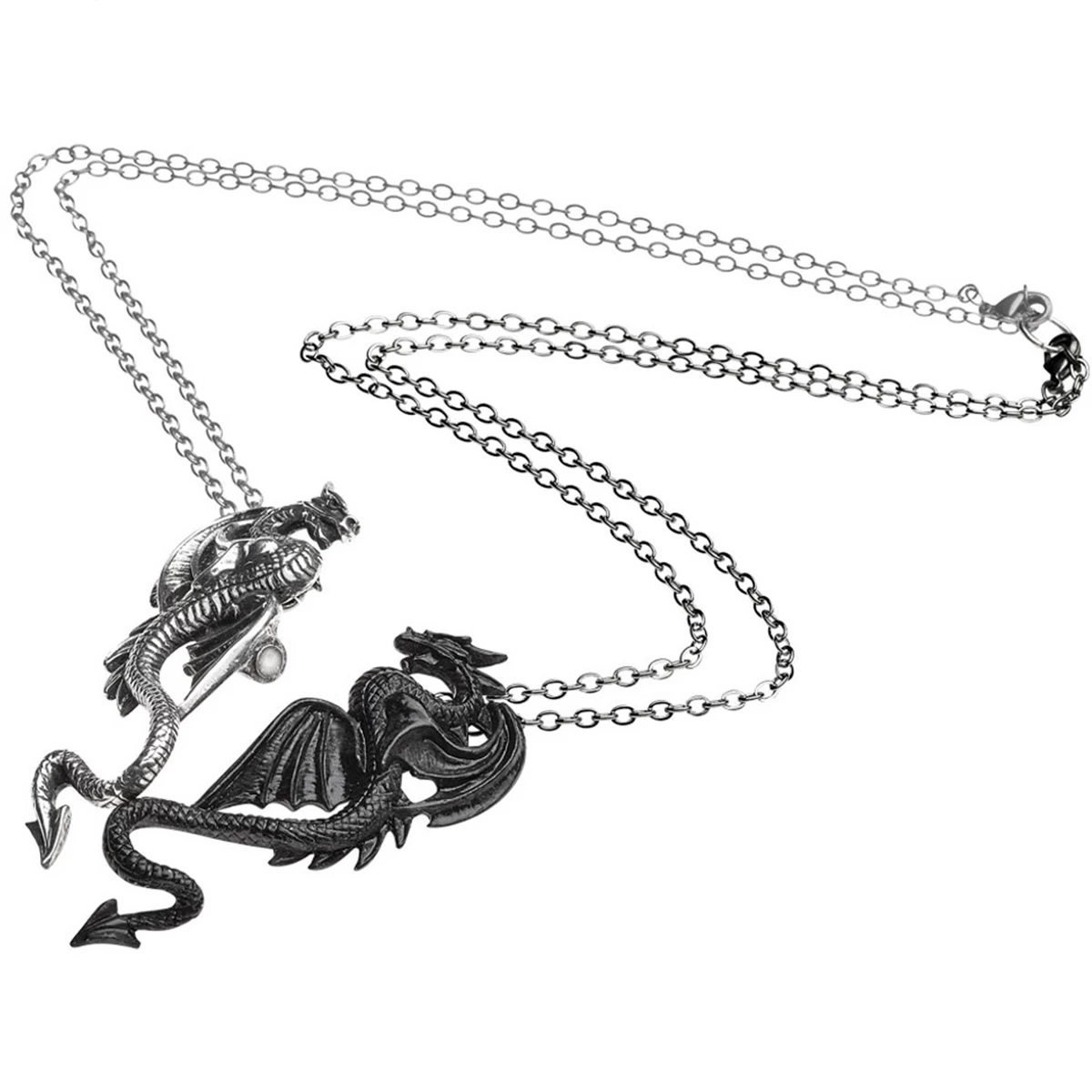 • Les deux dragons sont attachés ensemble par des aimants cachés et se détachent lorsqu’ils sont tirés, faisant deux pendentifs séparés sur leurs propres chaînes.