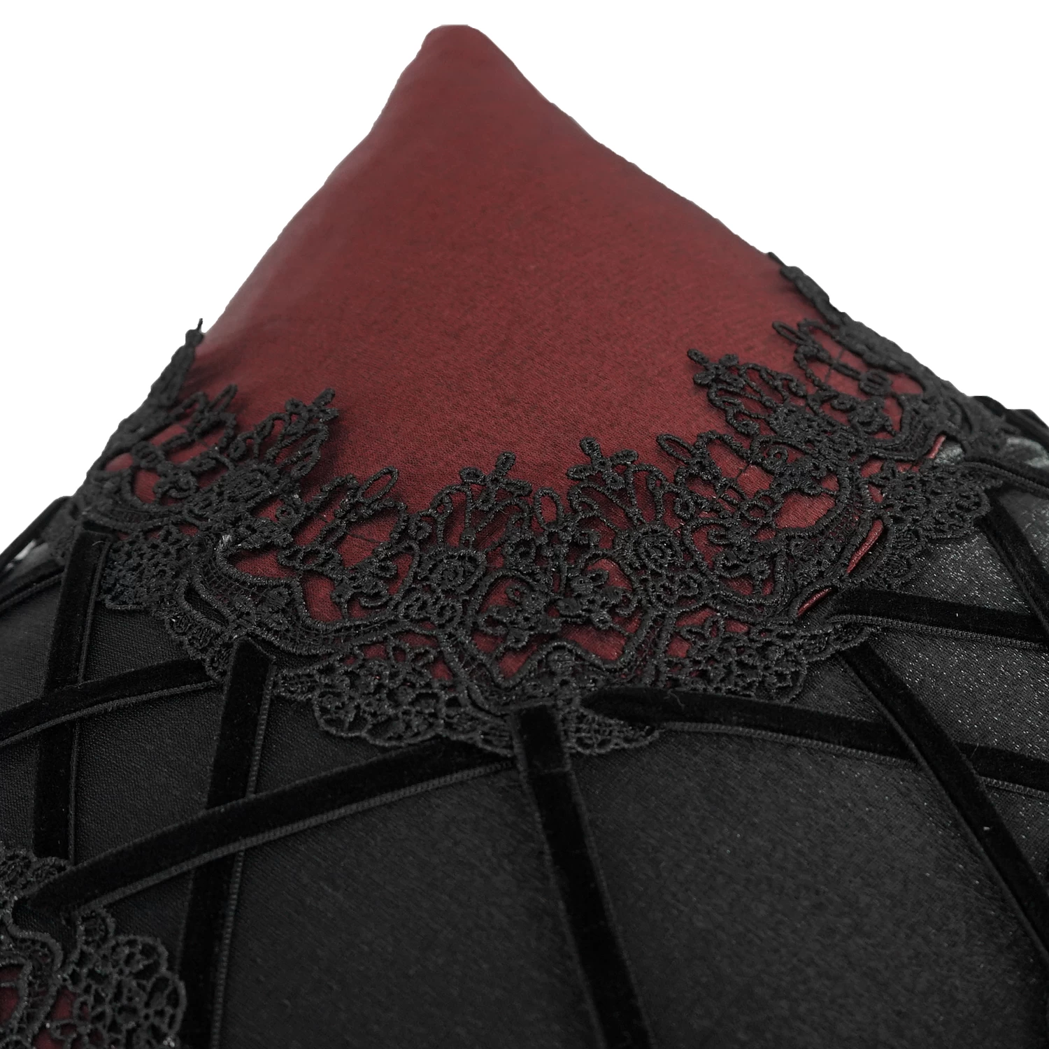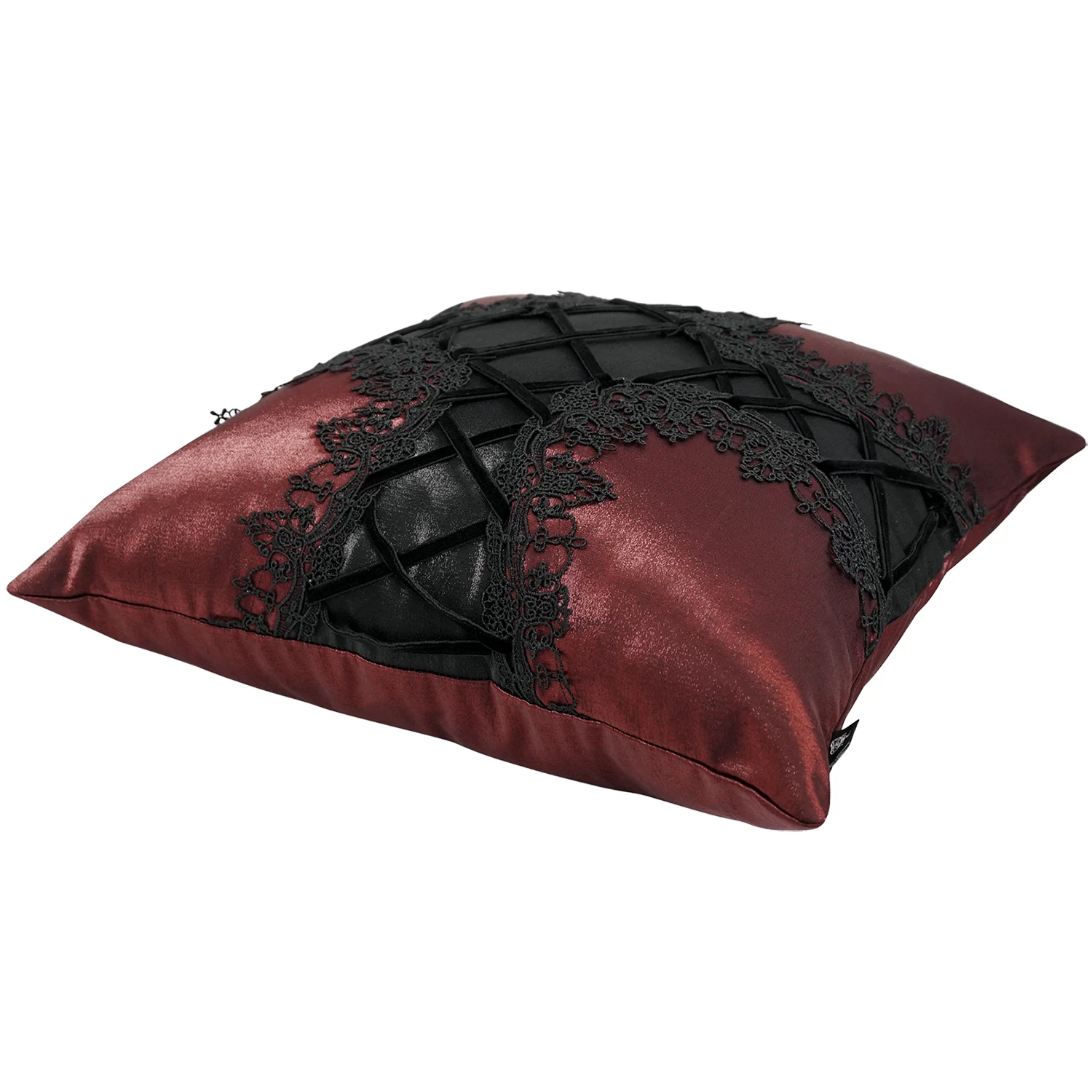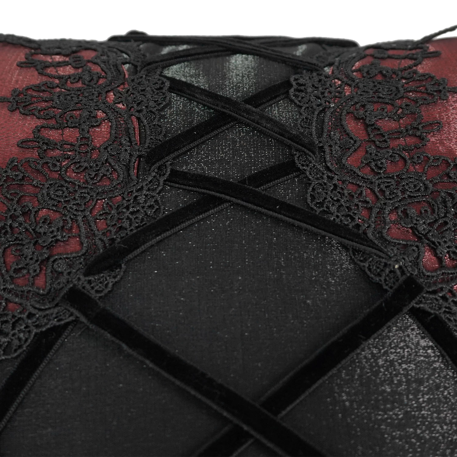 En tissu bordeaux brillant, avec un tissu noir en forme de croix brillante au milieu