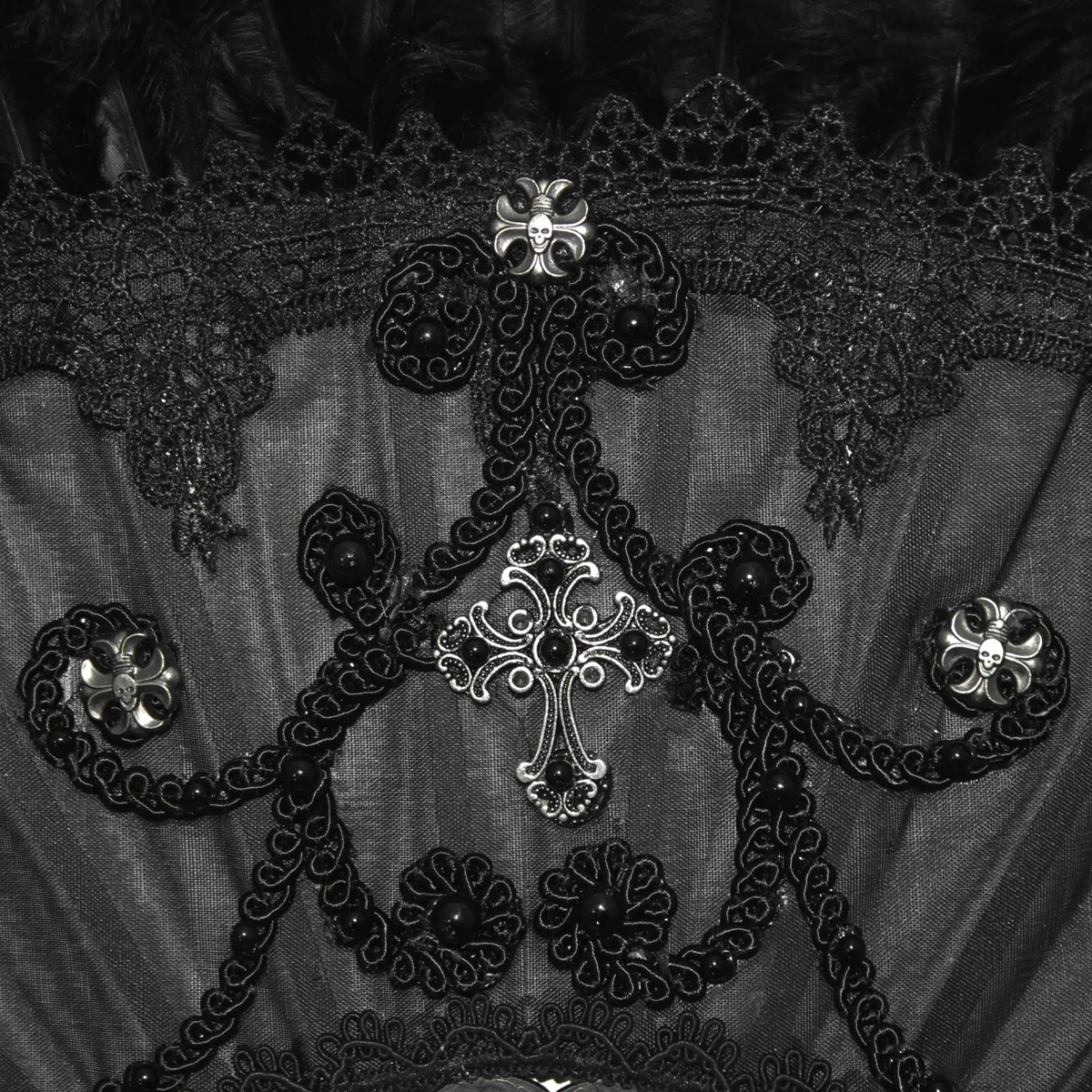 • Revêtement orné d’une bordure en dentelle et de plumes