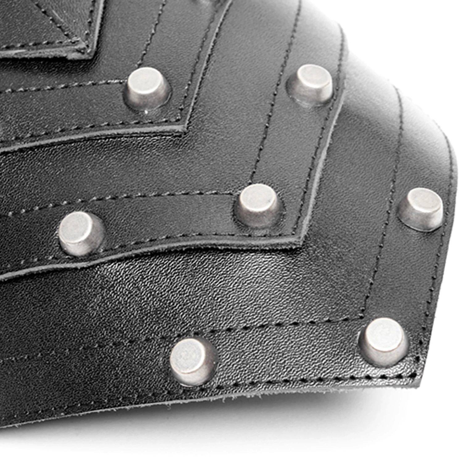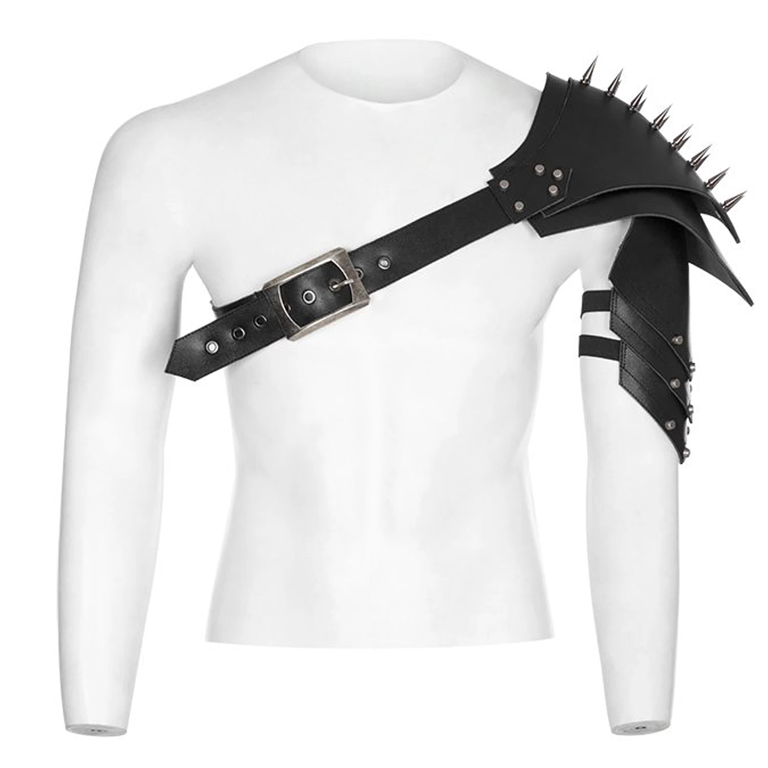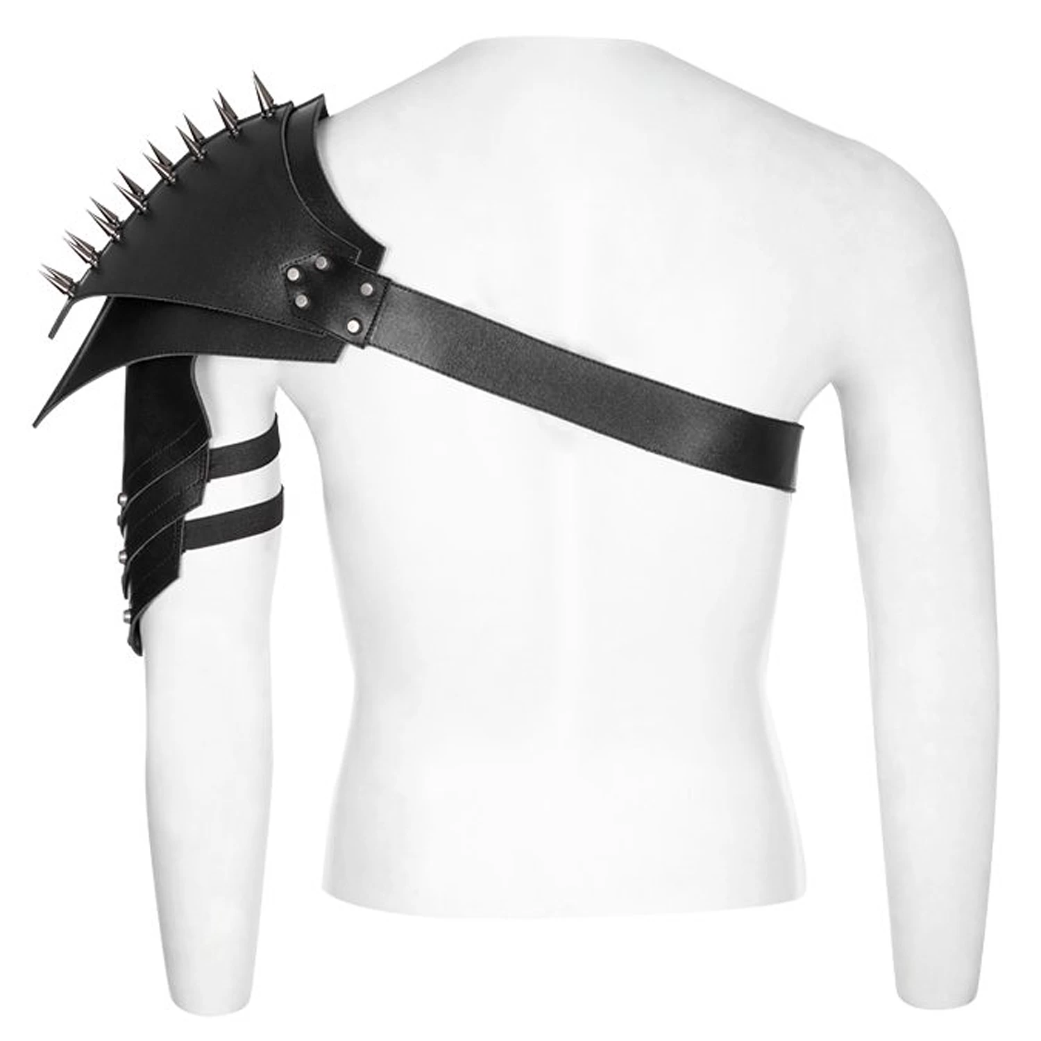 Accessoire d’épaule en cuir synthétique noir de guerrier post-apocalyptique de style gothique fetish.