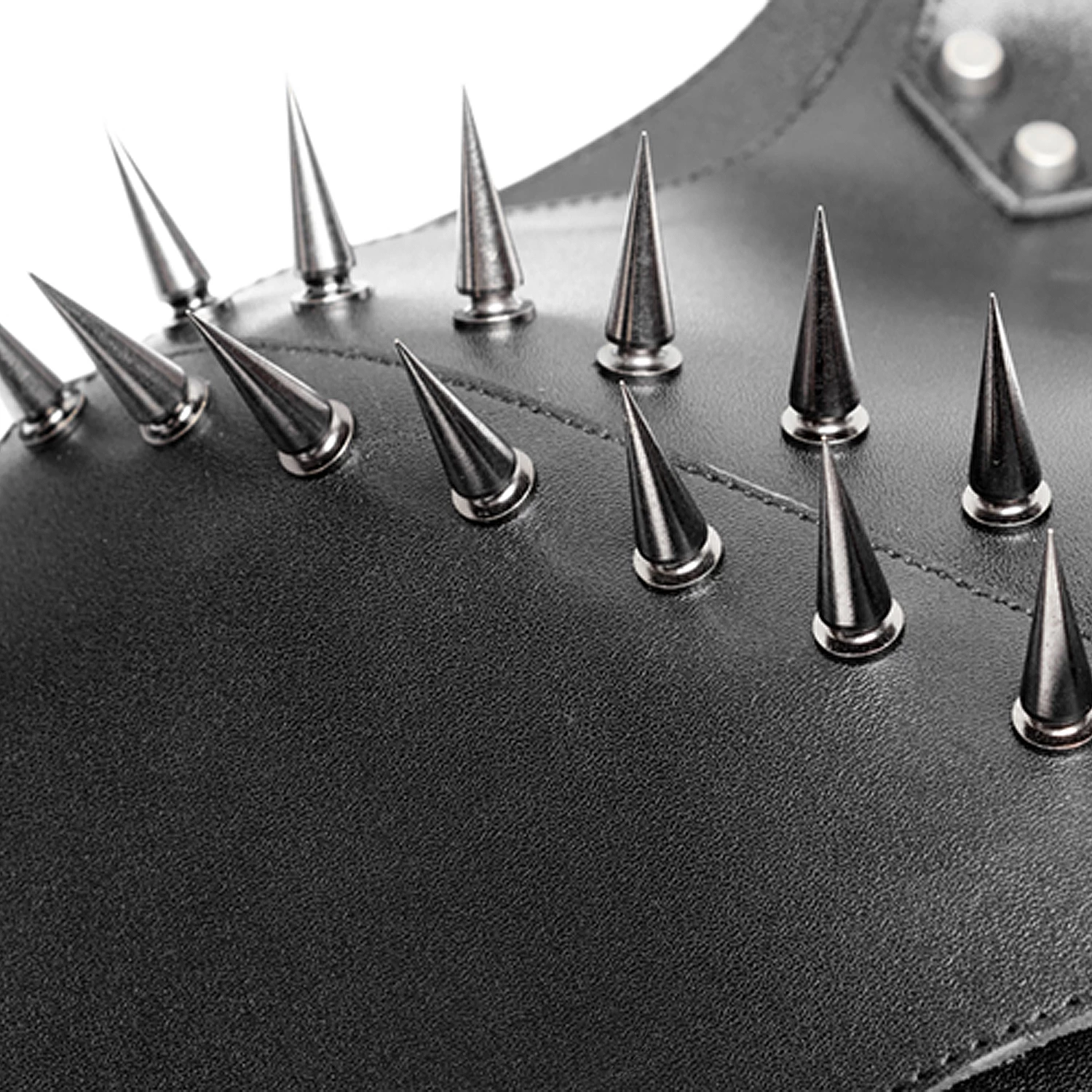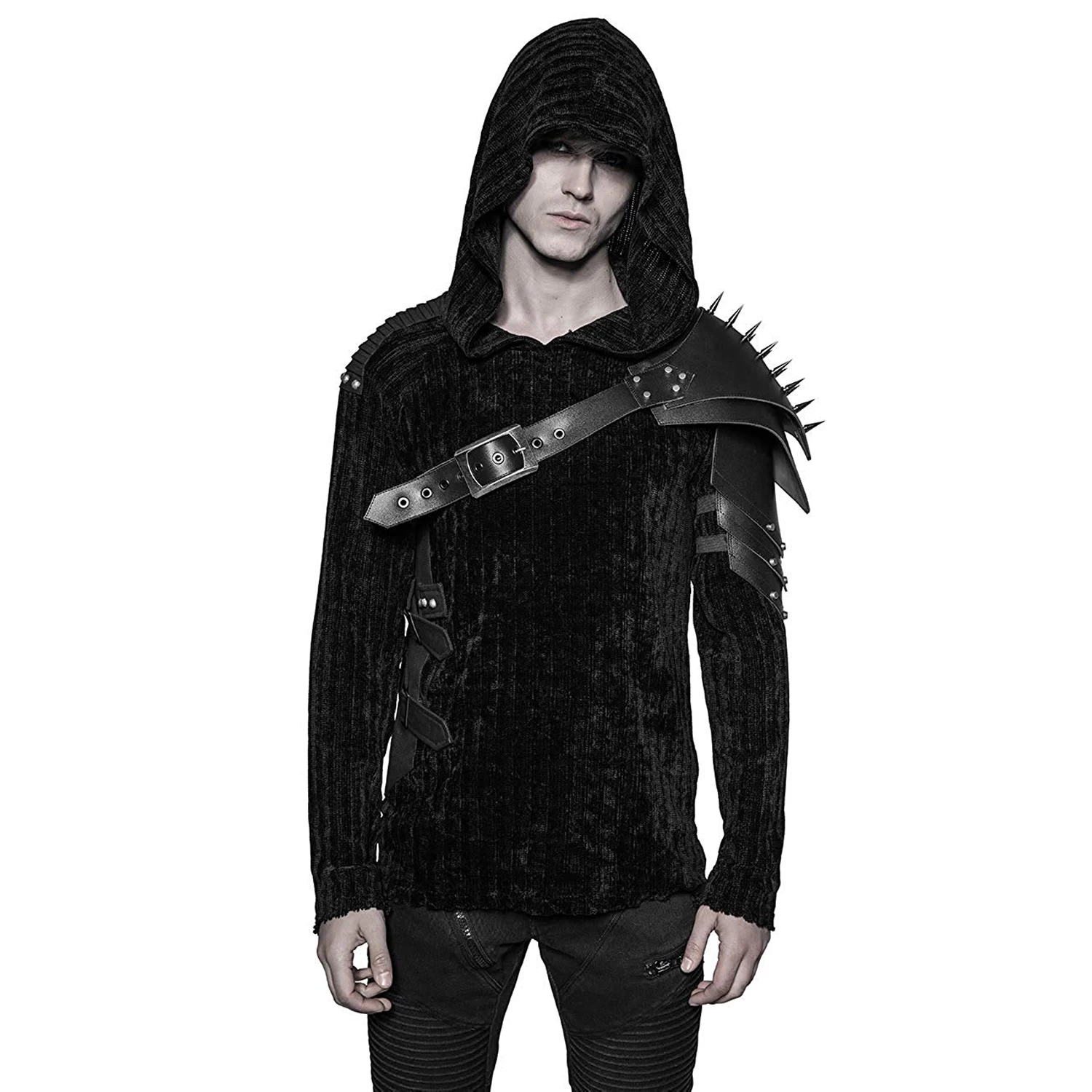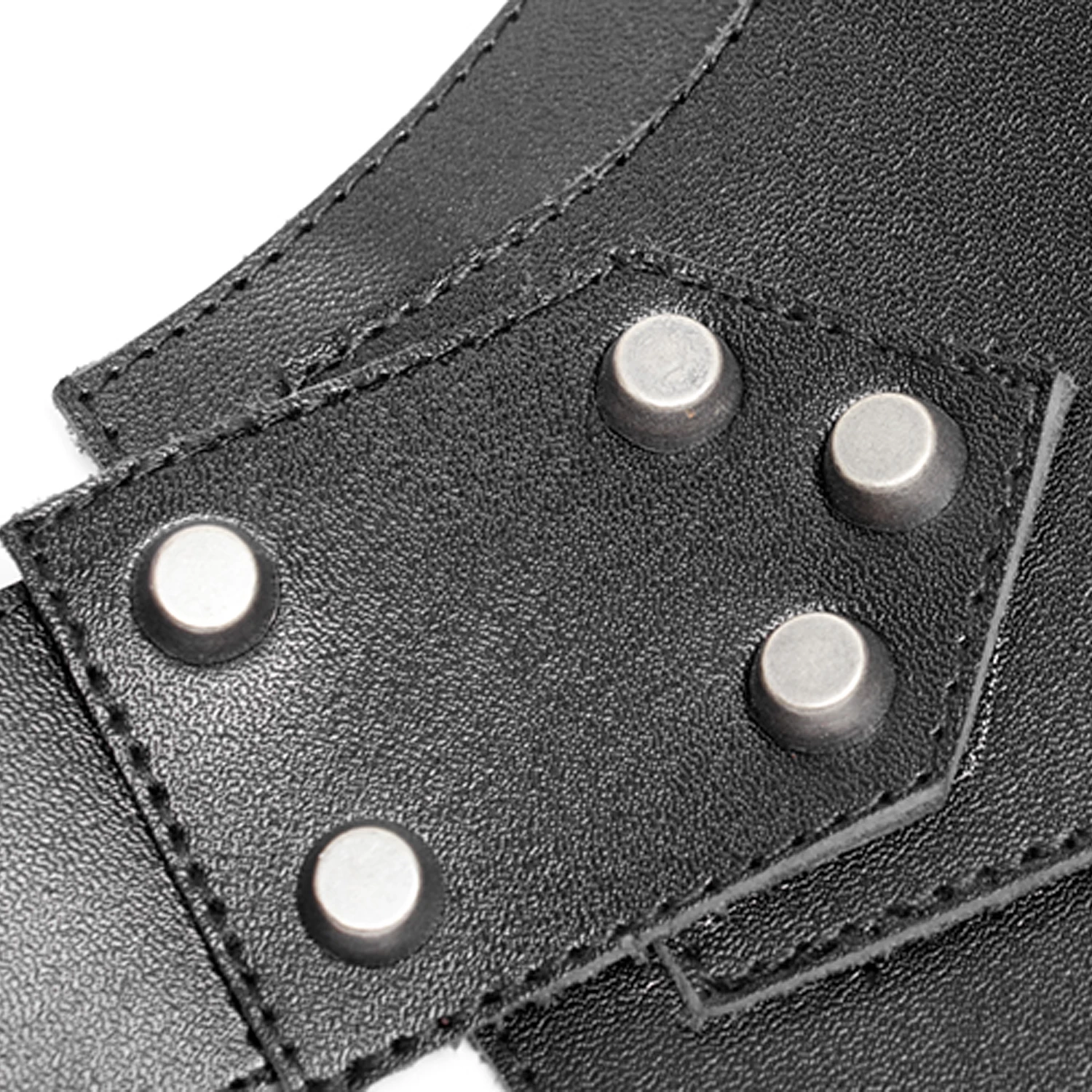 Accessoire d’épaule en cuir synthétique noir de guerrier post-apocalyptique de style gothique fetish.