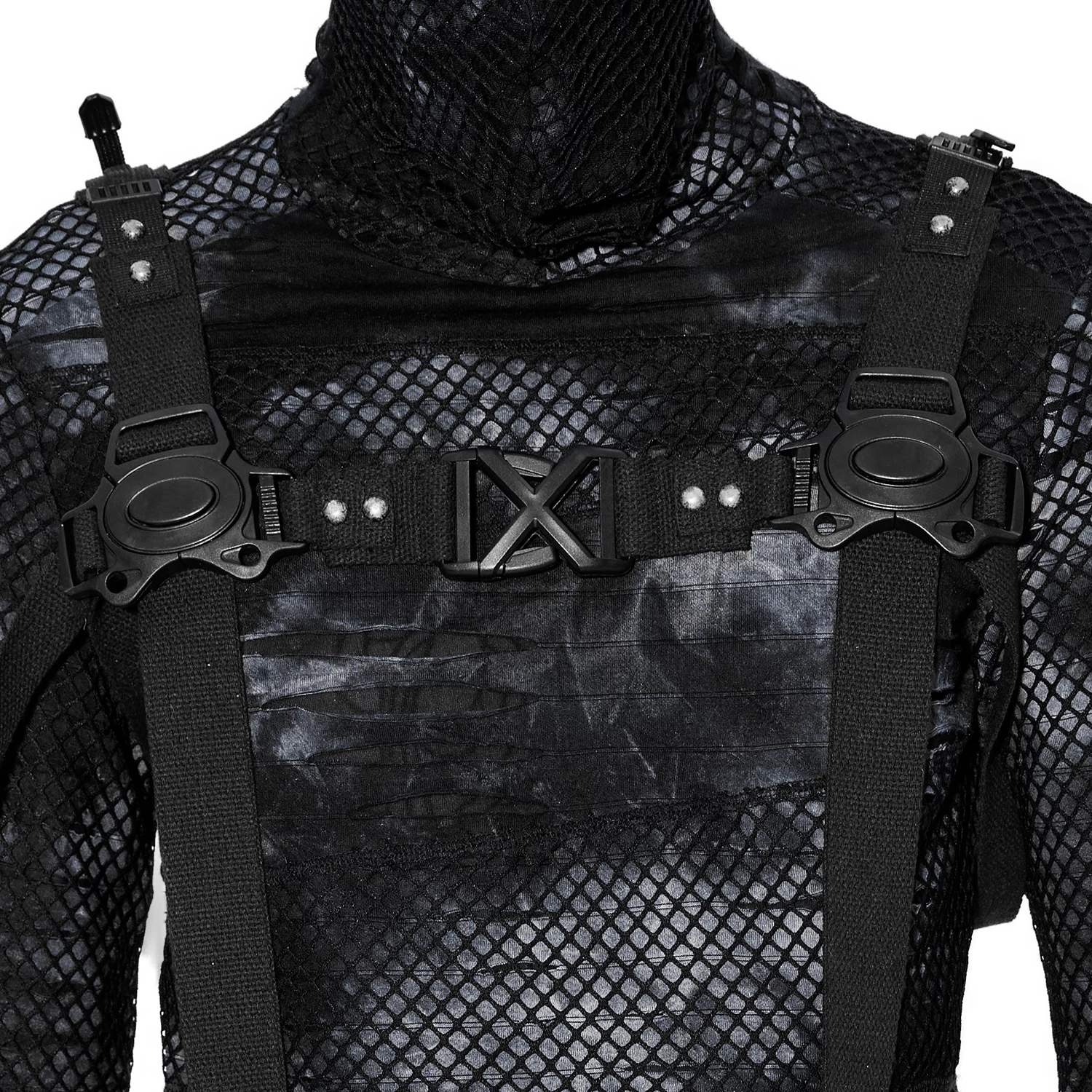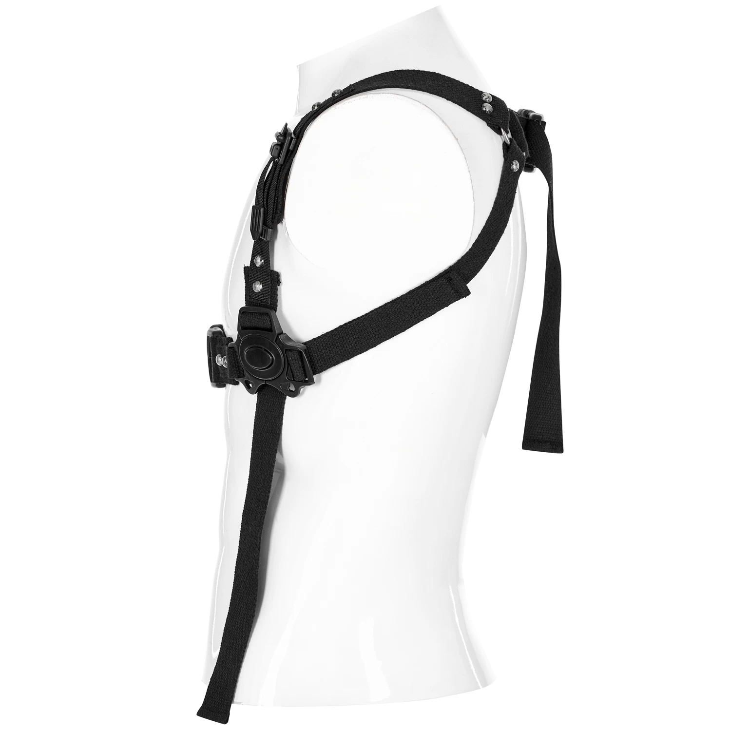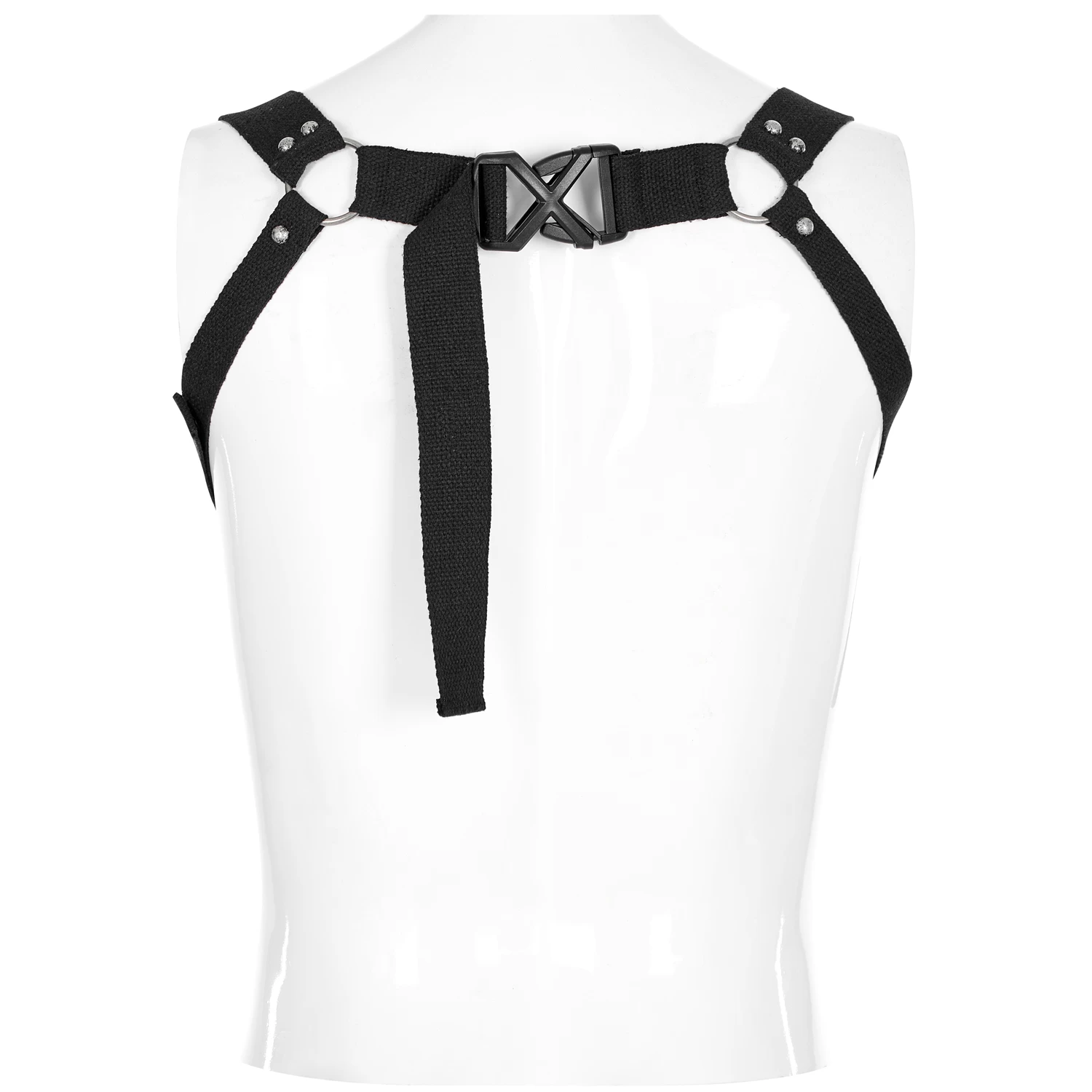 • Sangles rivetées et réunies dans le dos par un clip unissant deux anneaux métalliques