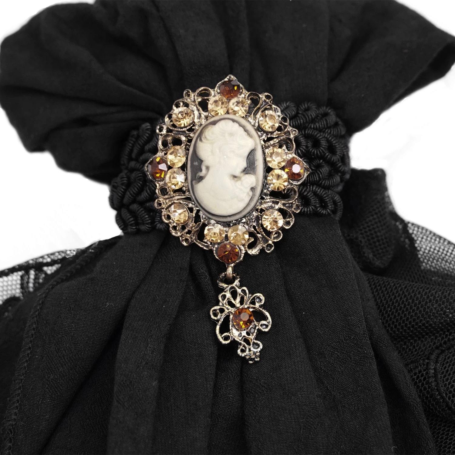 • Grande broche avec un camée de couleur ivoire placé dans un cadre en filigrane de vrilles de couleur vieil or