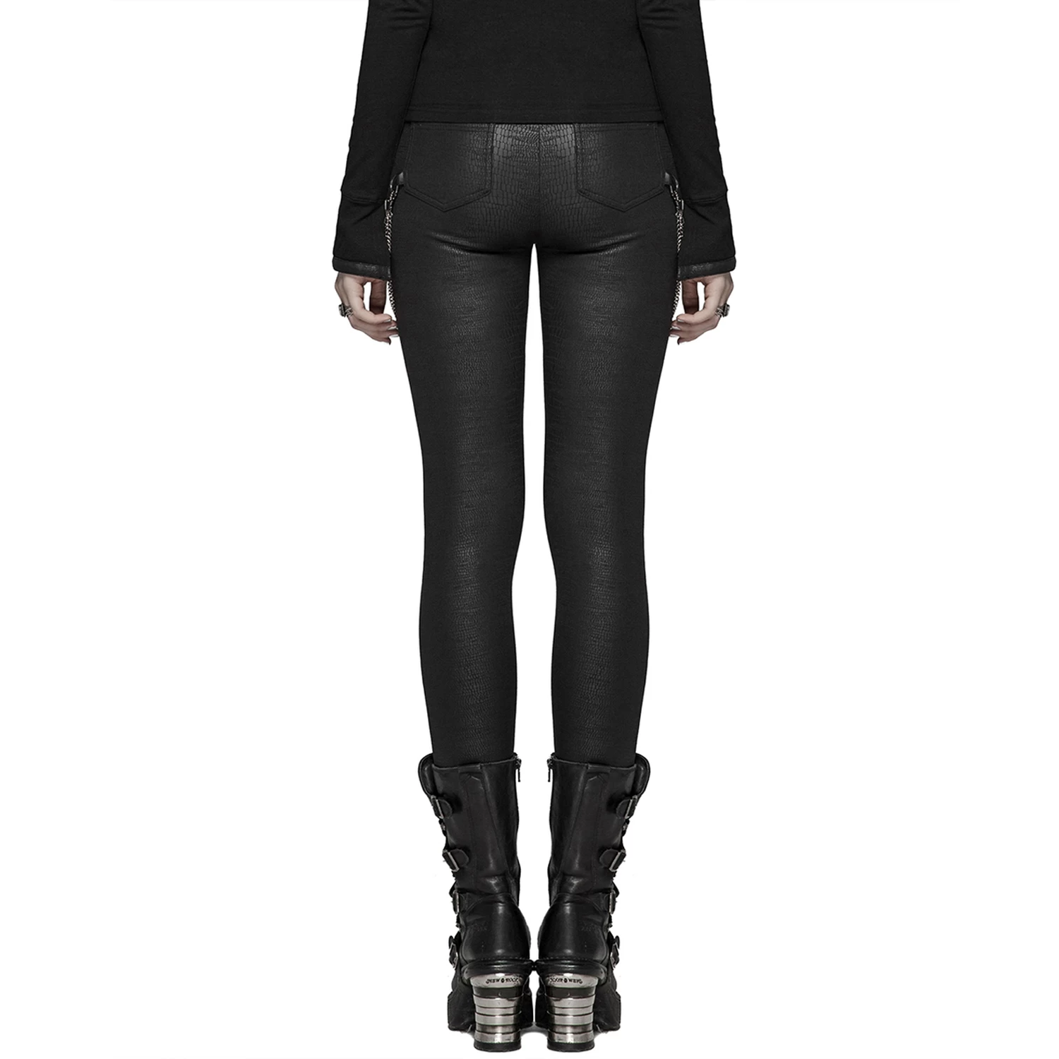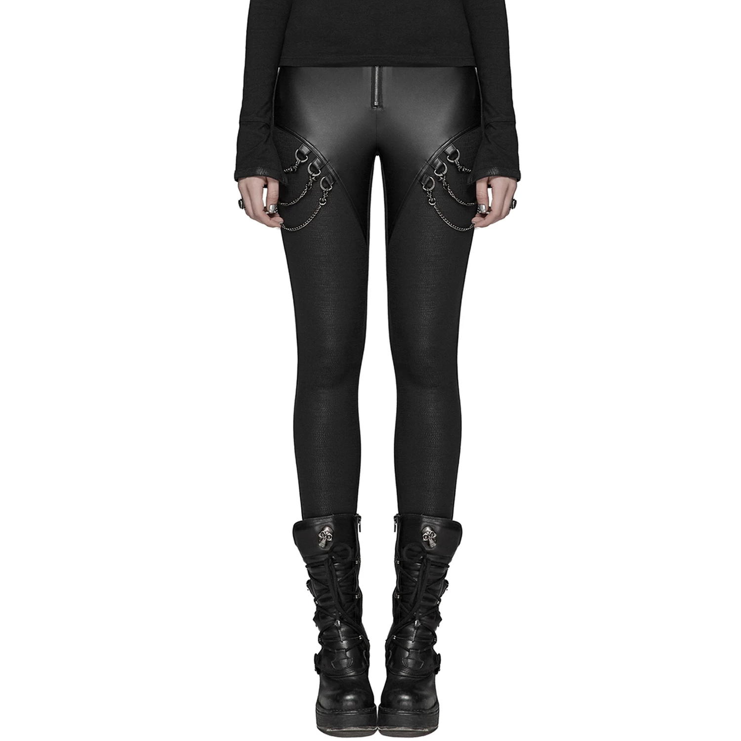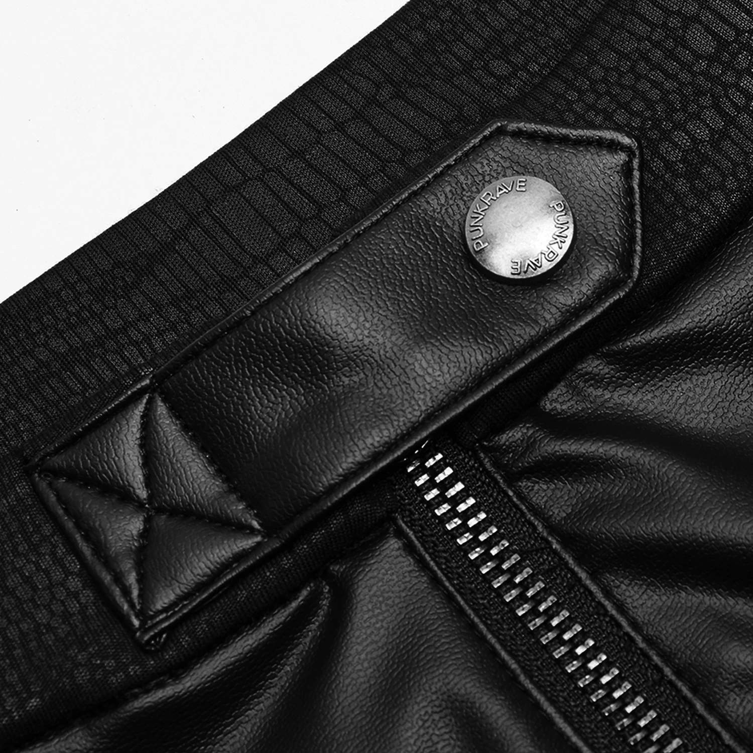 • Languette en similicuir à fermeture pression sur la ceinture avec fermeture éclair apparente.