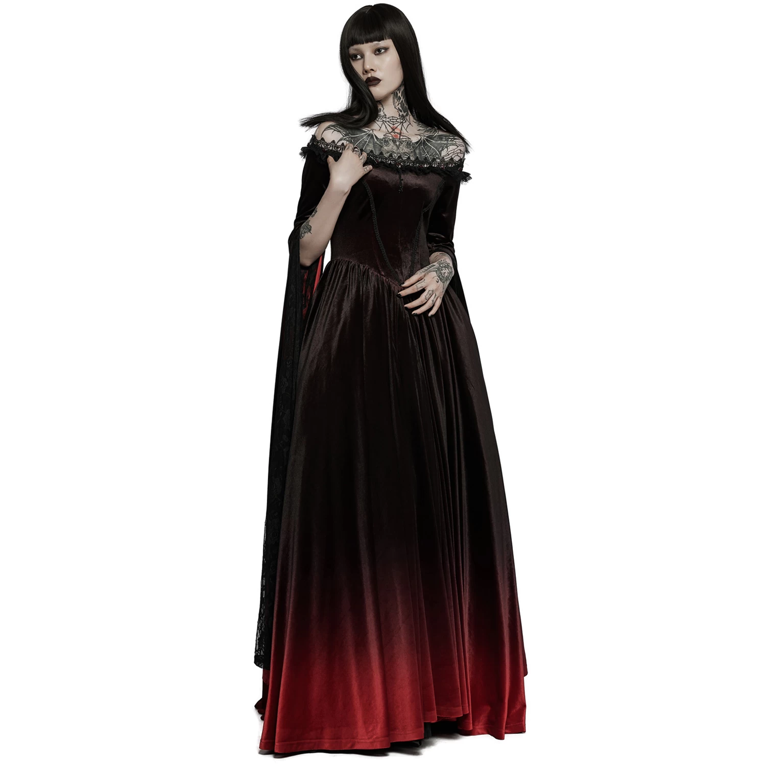 • Décolleté orné de pierres en verre rouge et une délicate dentelle faisant tout le tour du décolleté