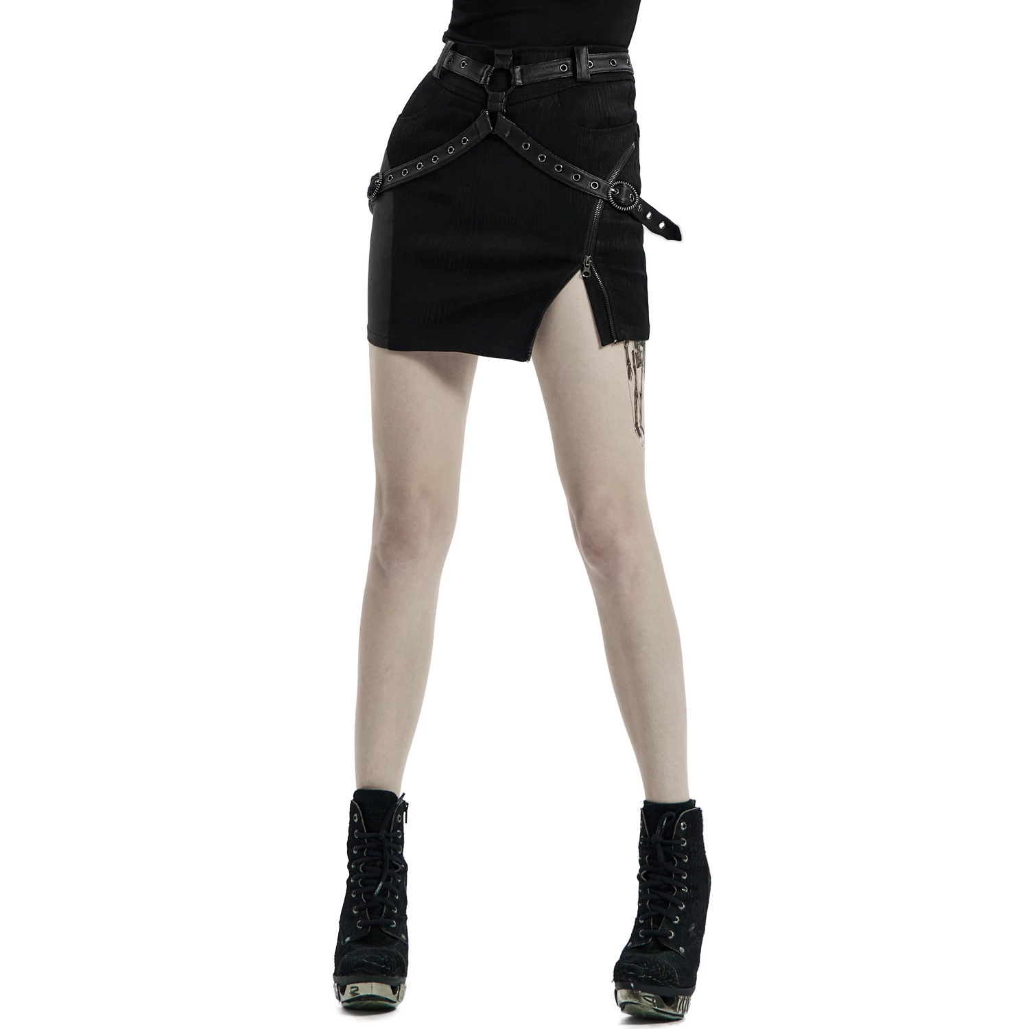 • Fermeture à glissière décorative, permettant de porter la jupe plus ou moins fendue