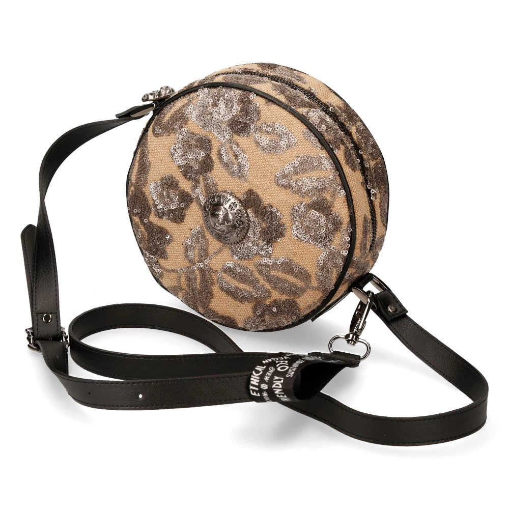 Sac à bandoulière rond, en synthétique floral, avec logo New Rock sur la face avant.