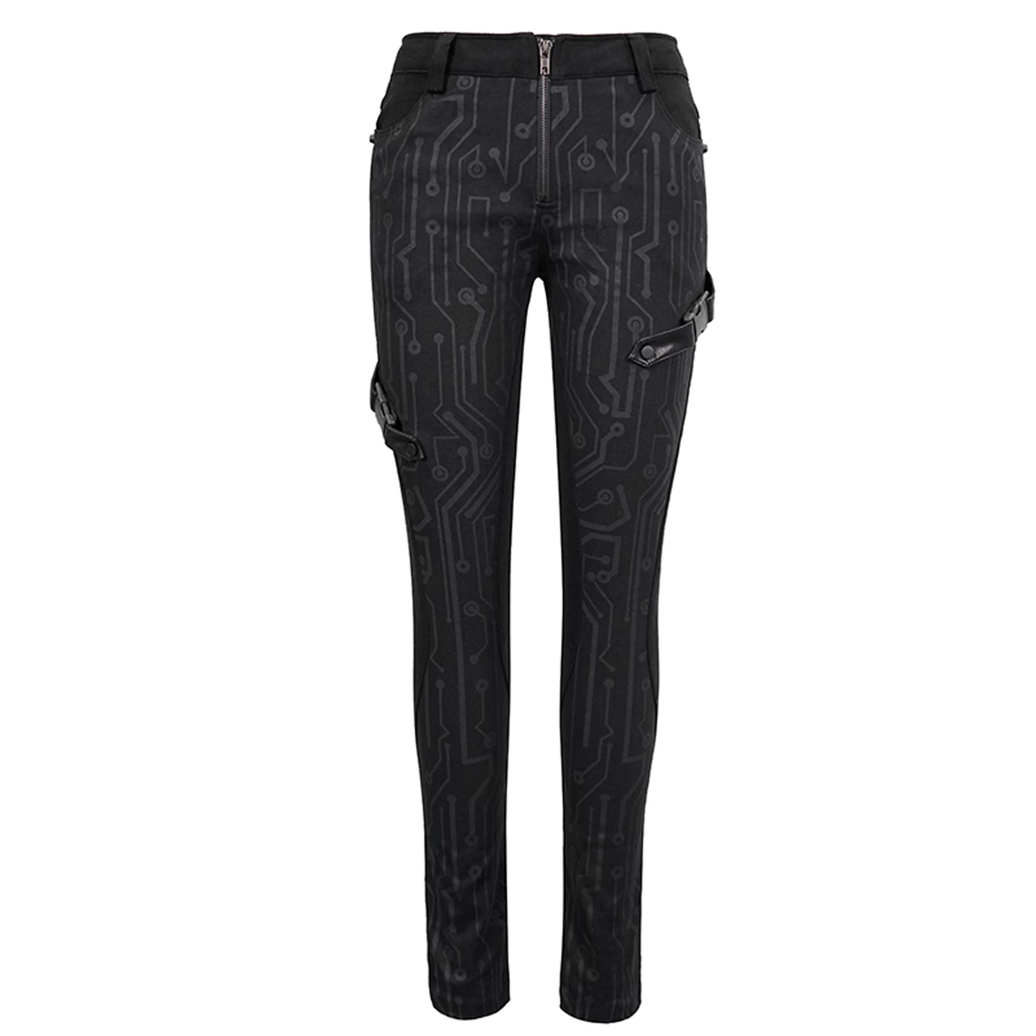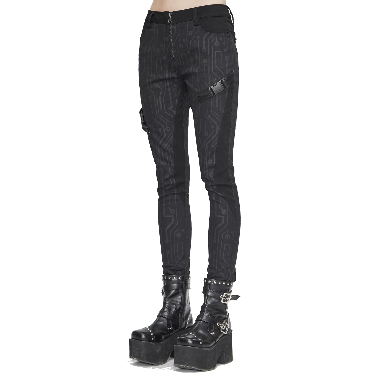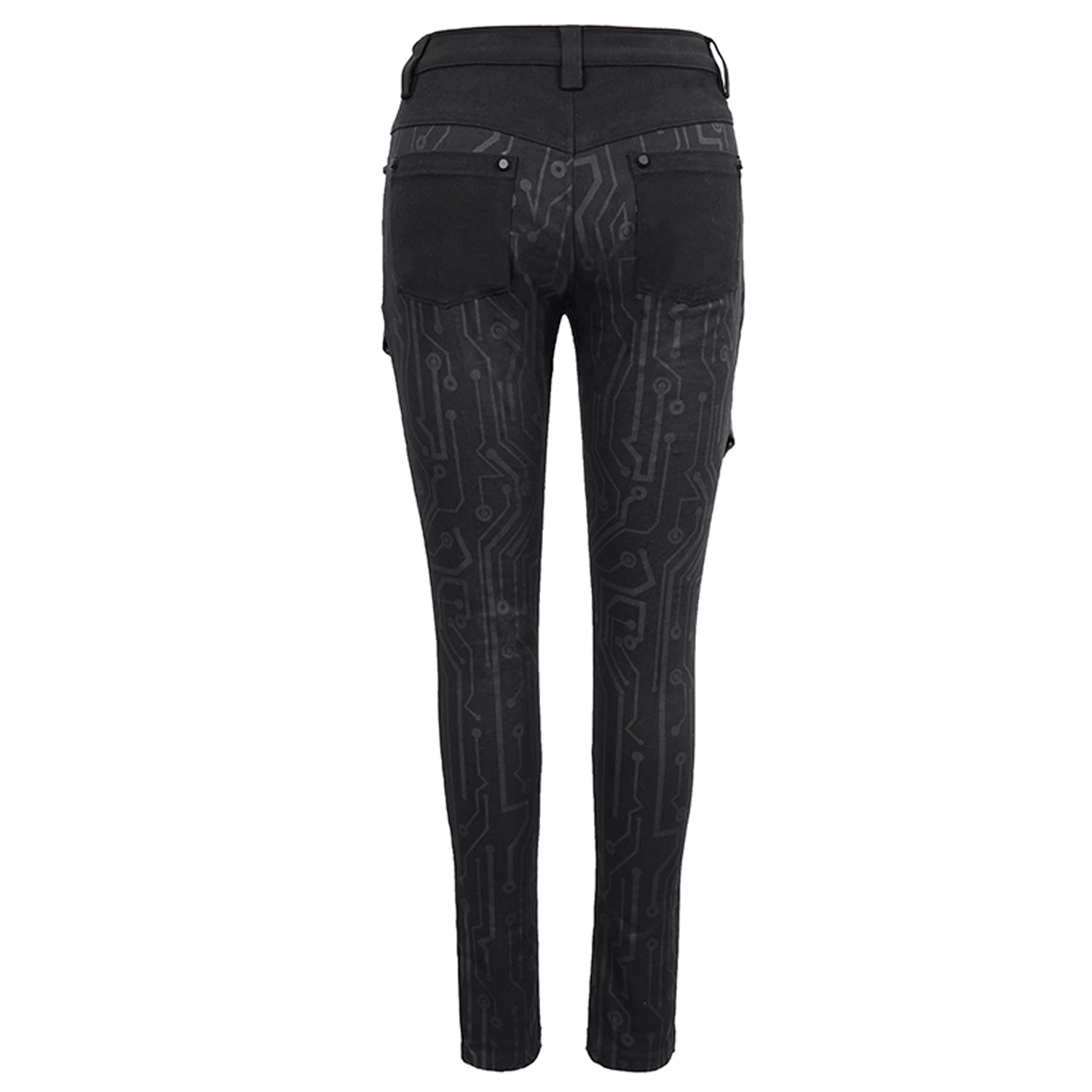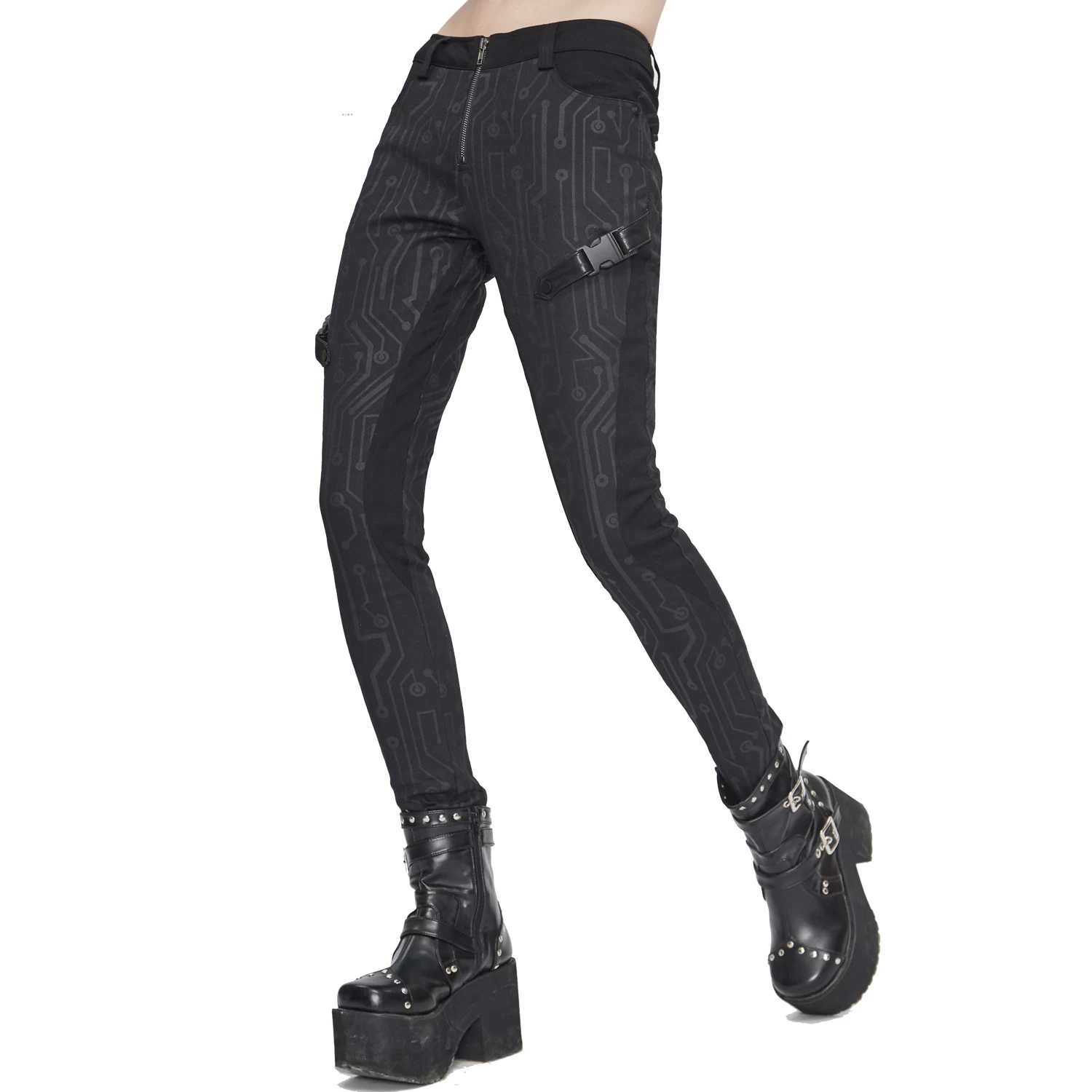 Pantalon slim en coton imprimé noir de style cyber goth.