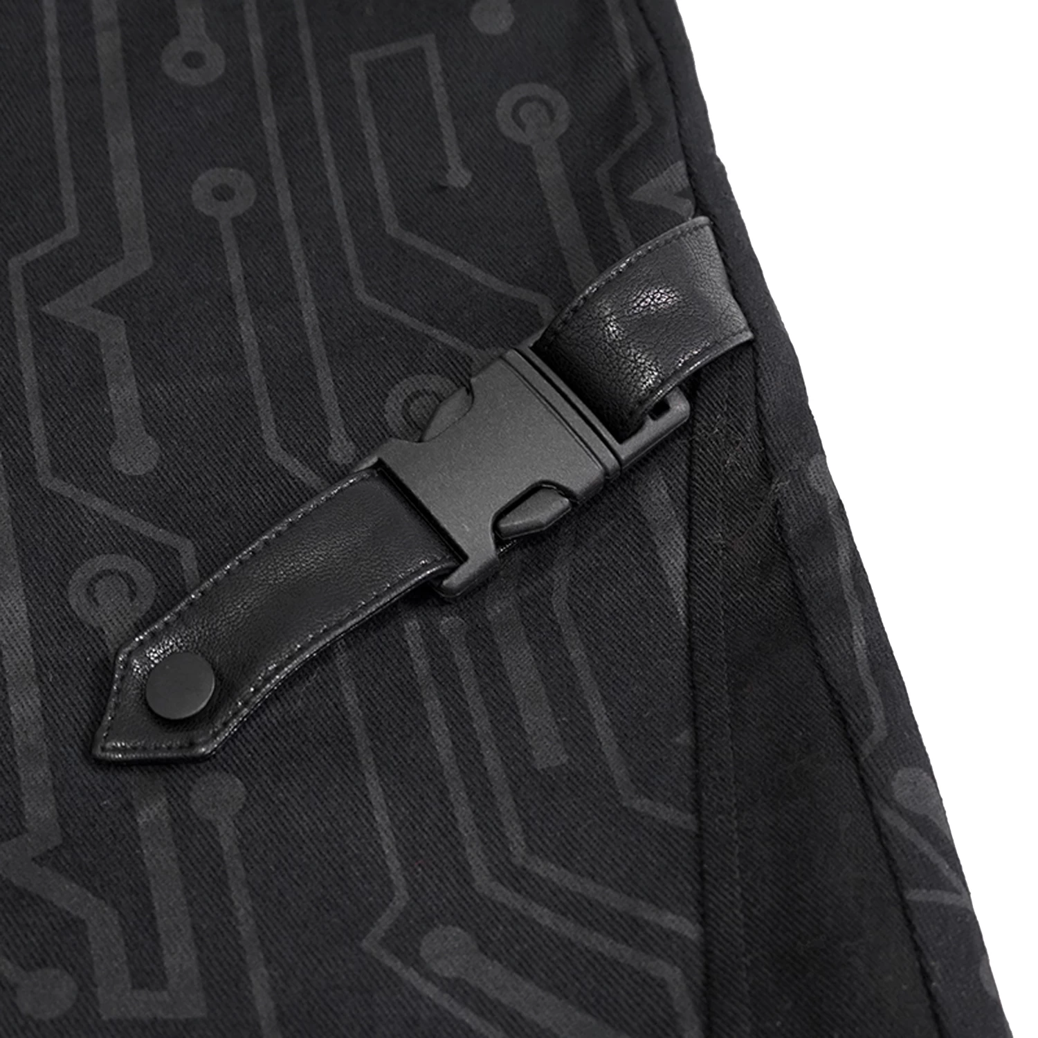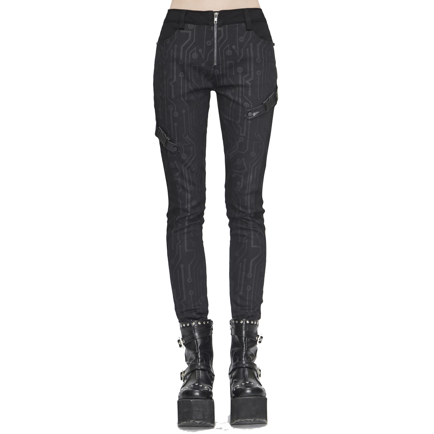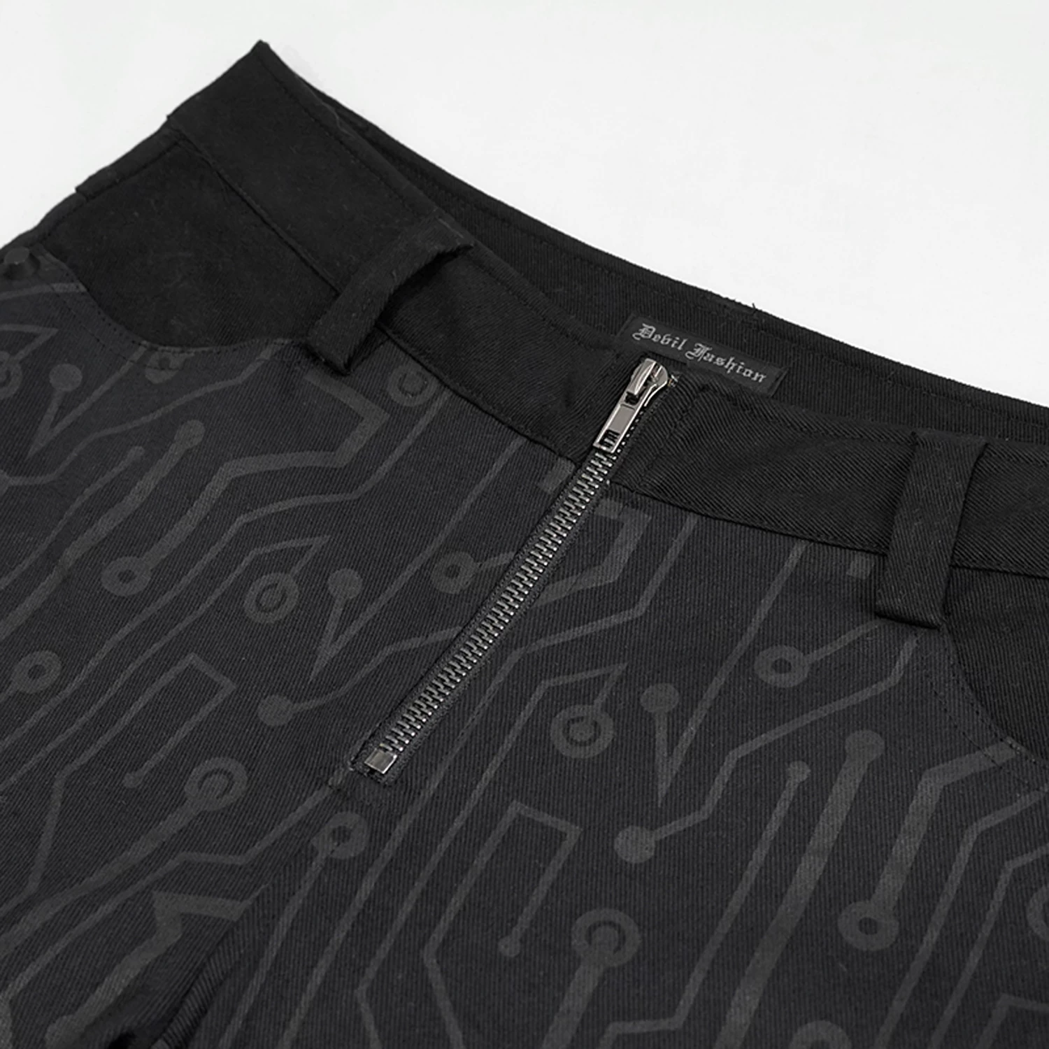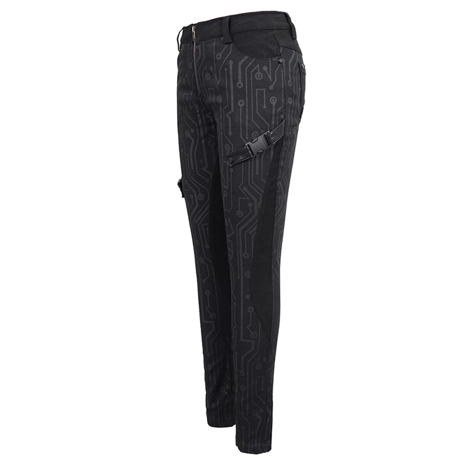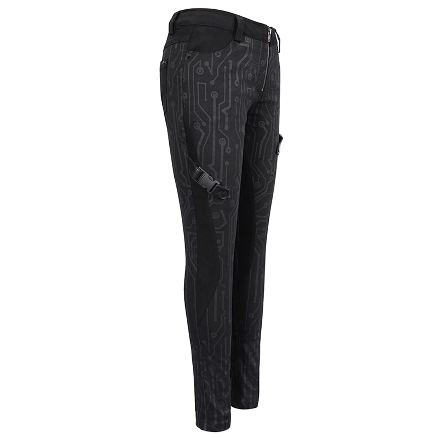Pantalon slim en coton imprimé noir de style cyber goth.