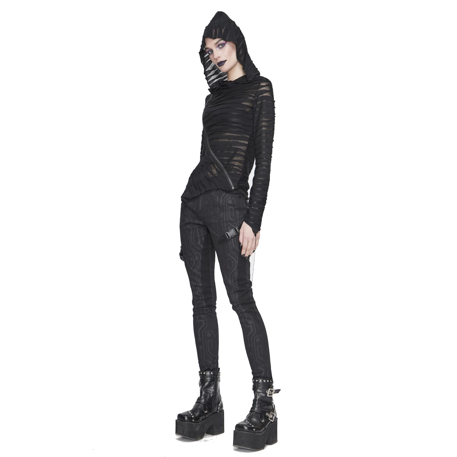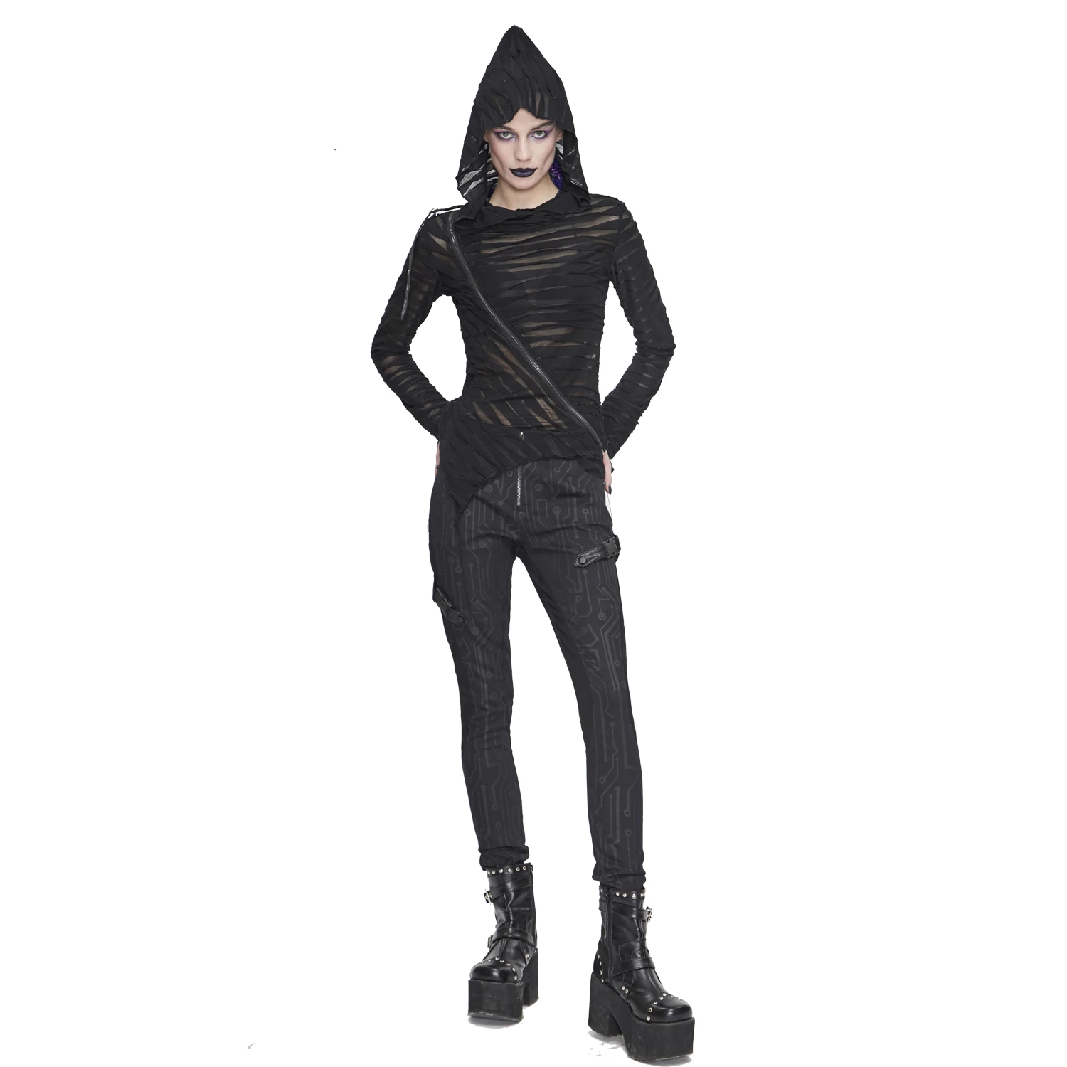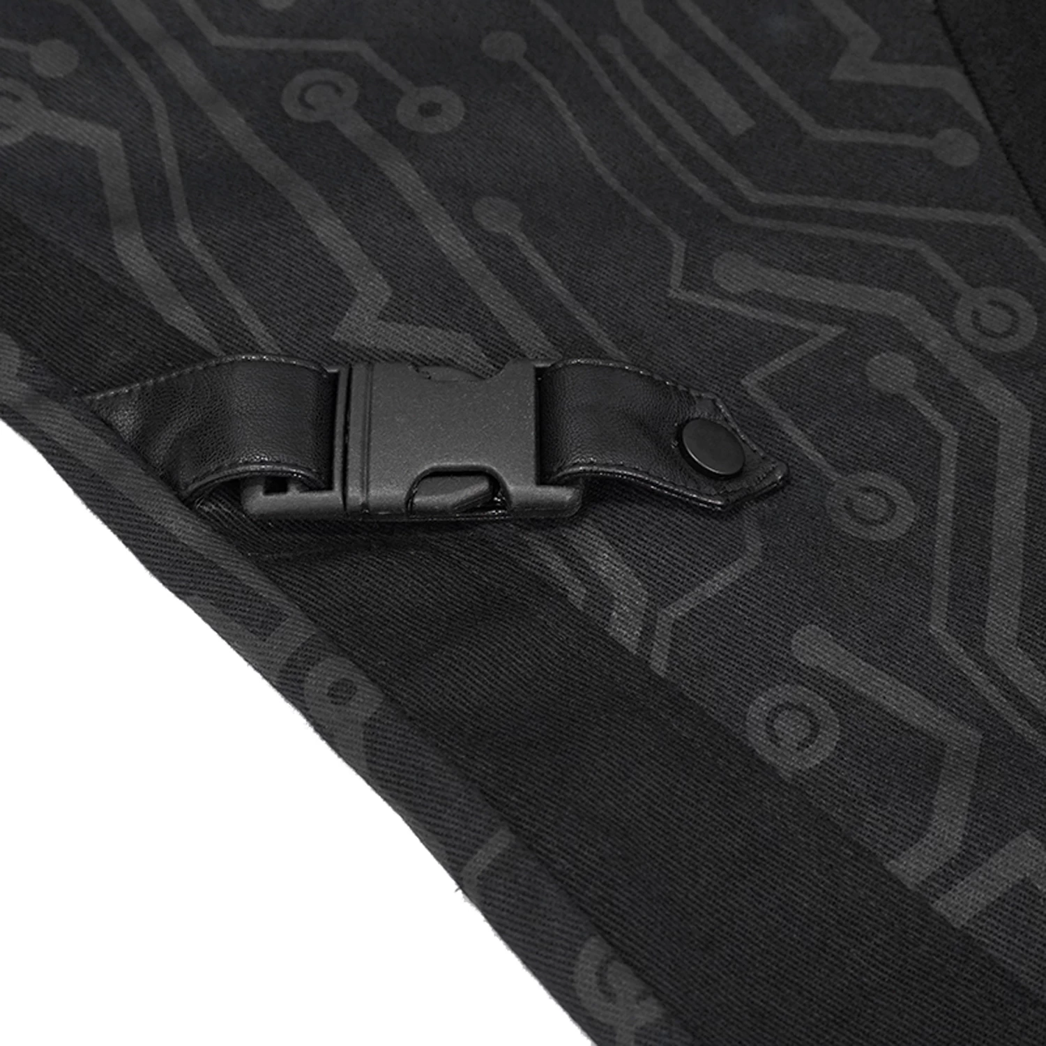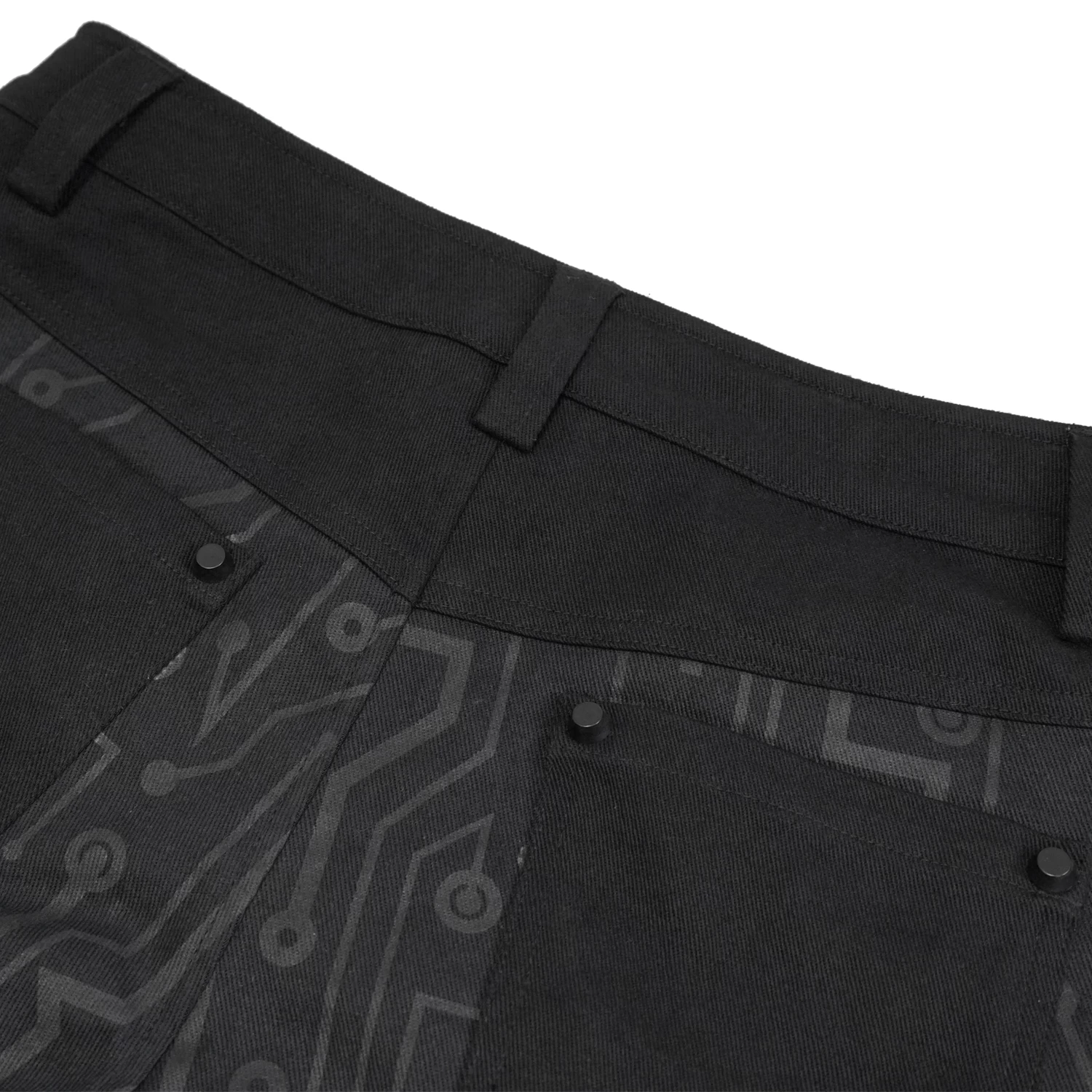 Pantalon slim en coton imprimé noir de style cyber goth.