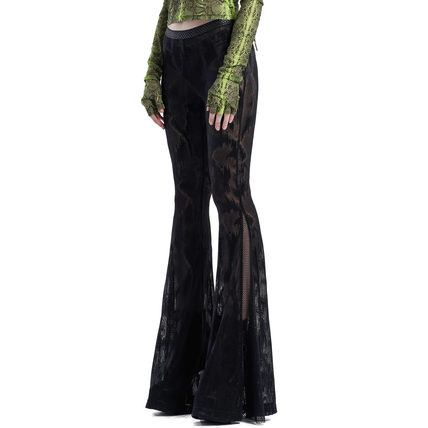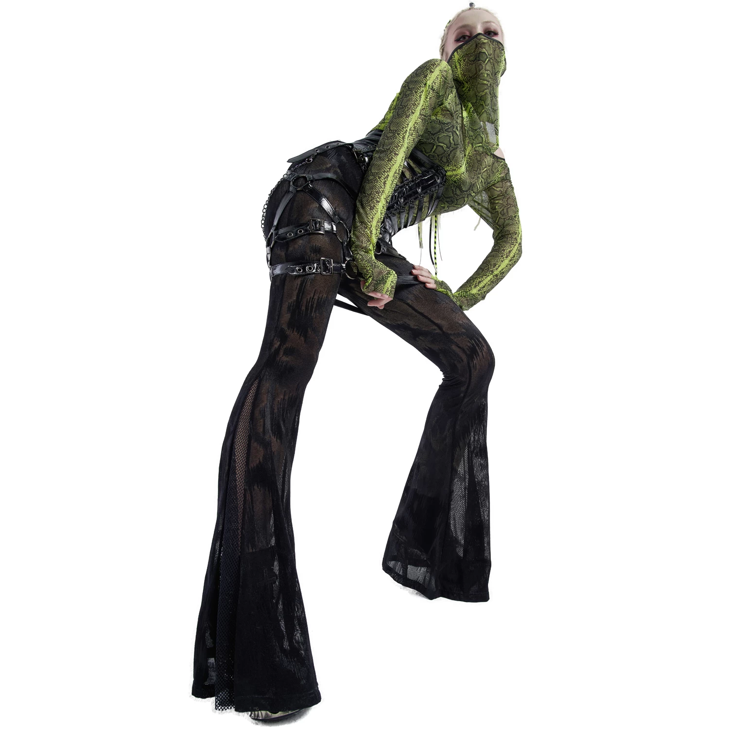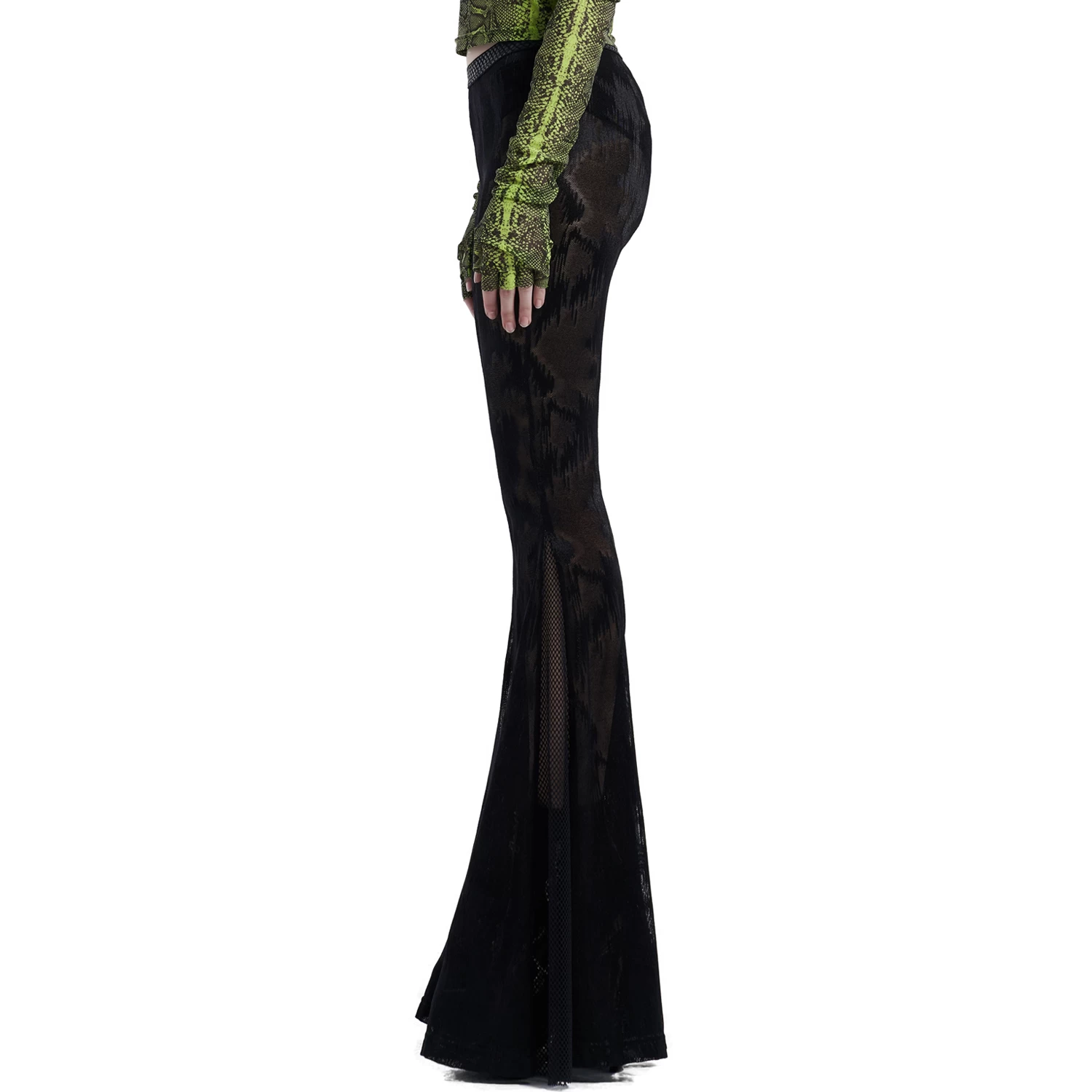 • Evasé au bas, avec de la résille unie des côtés des jambes