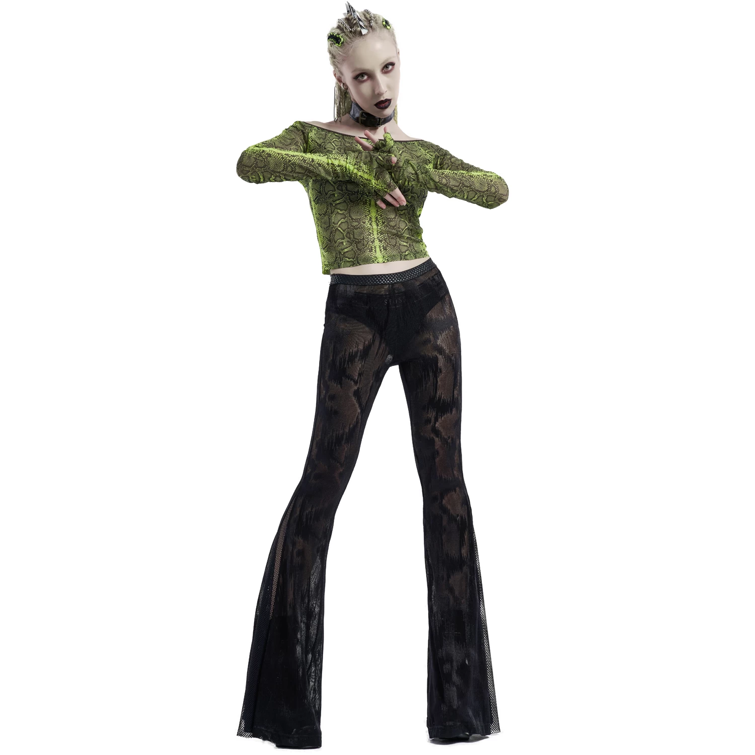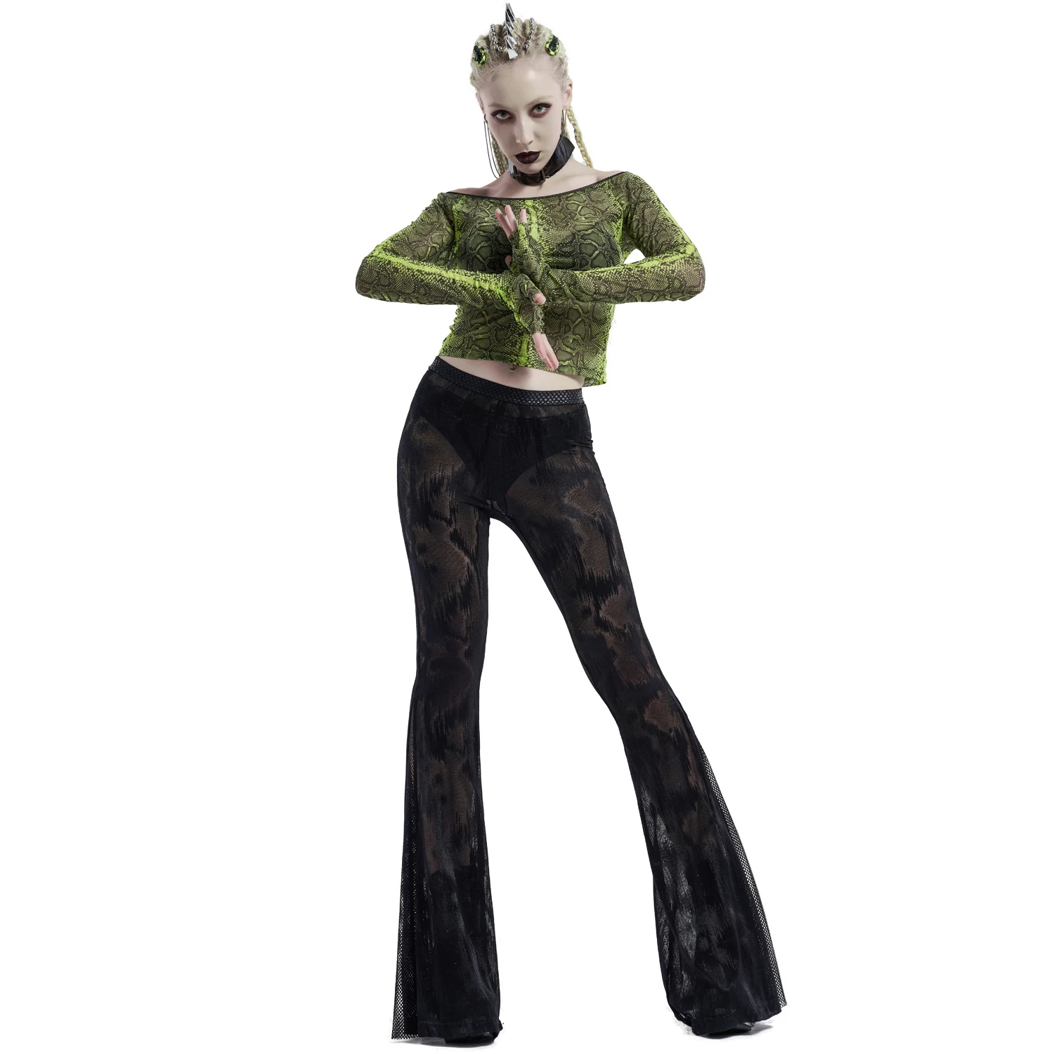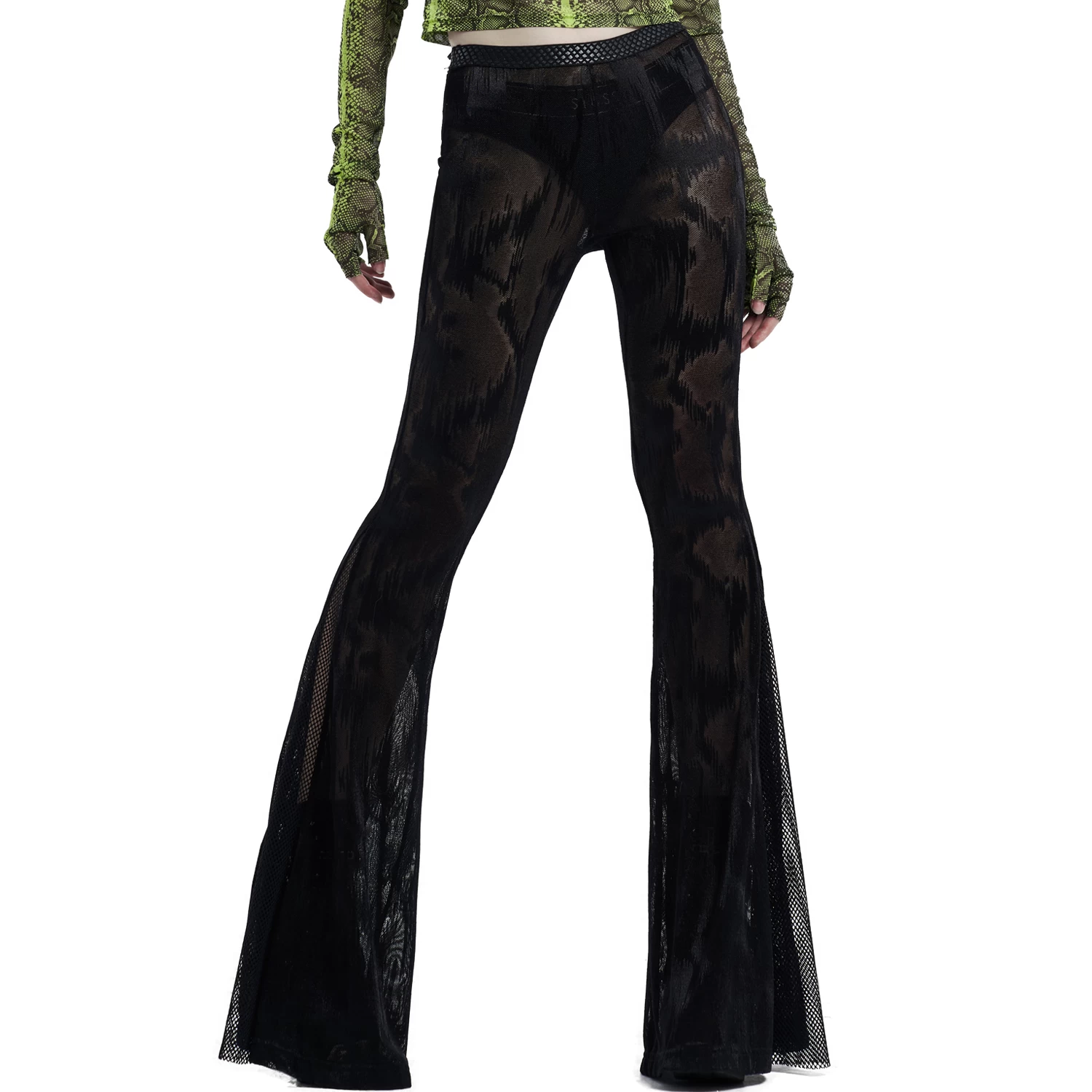• Evasé au bas, avec de la résille unie des côtés des jambes