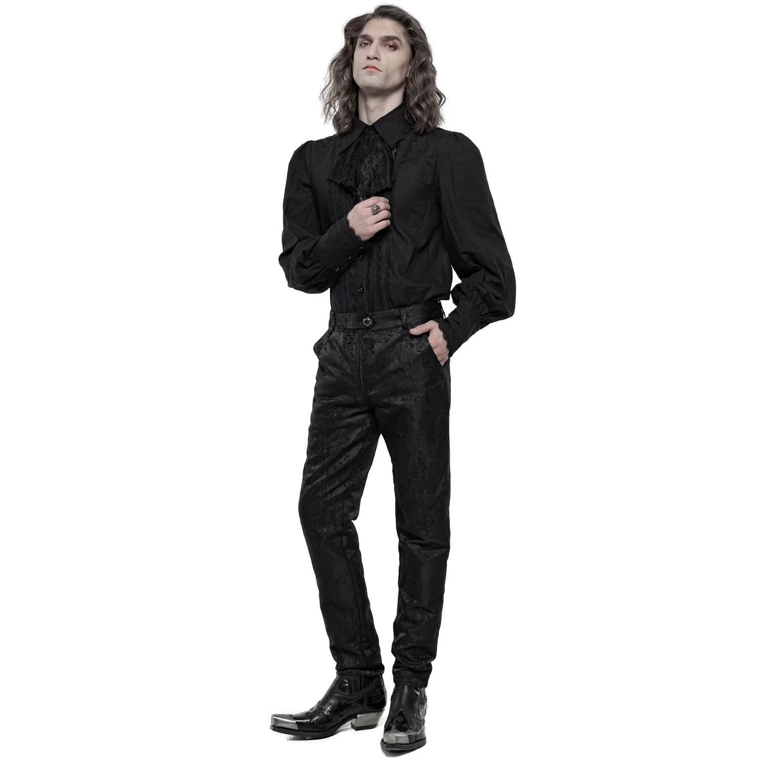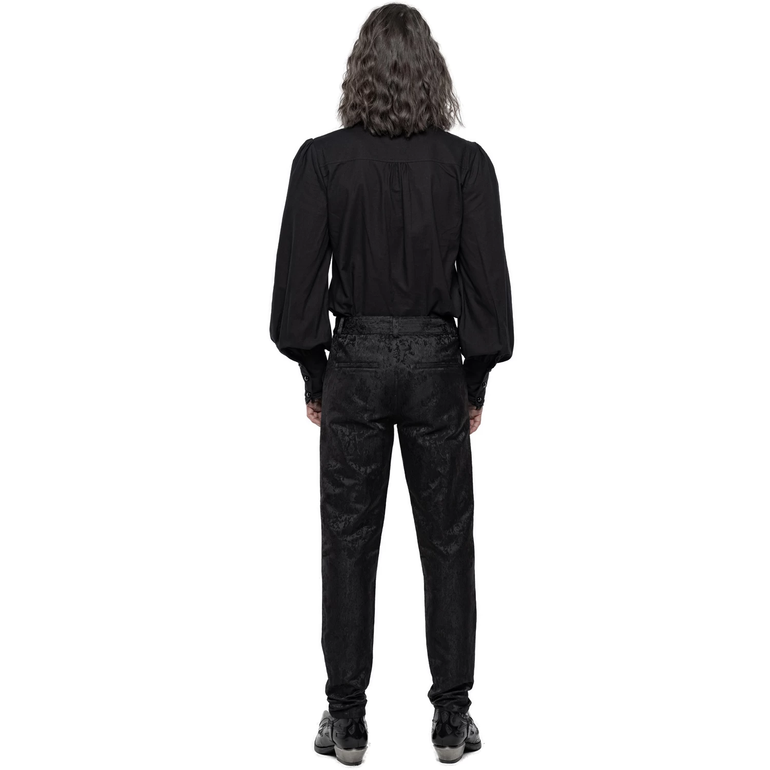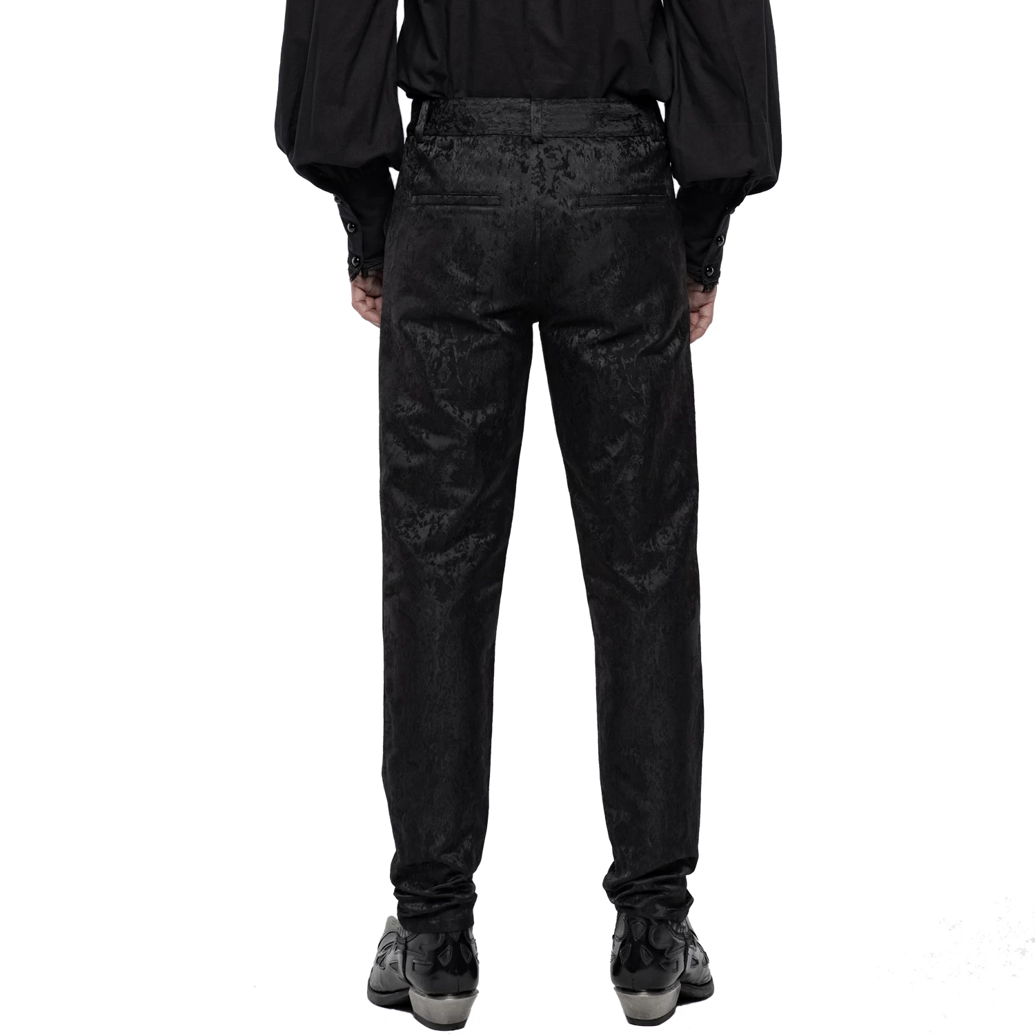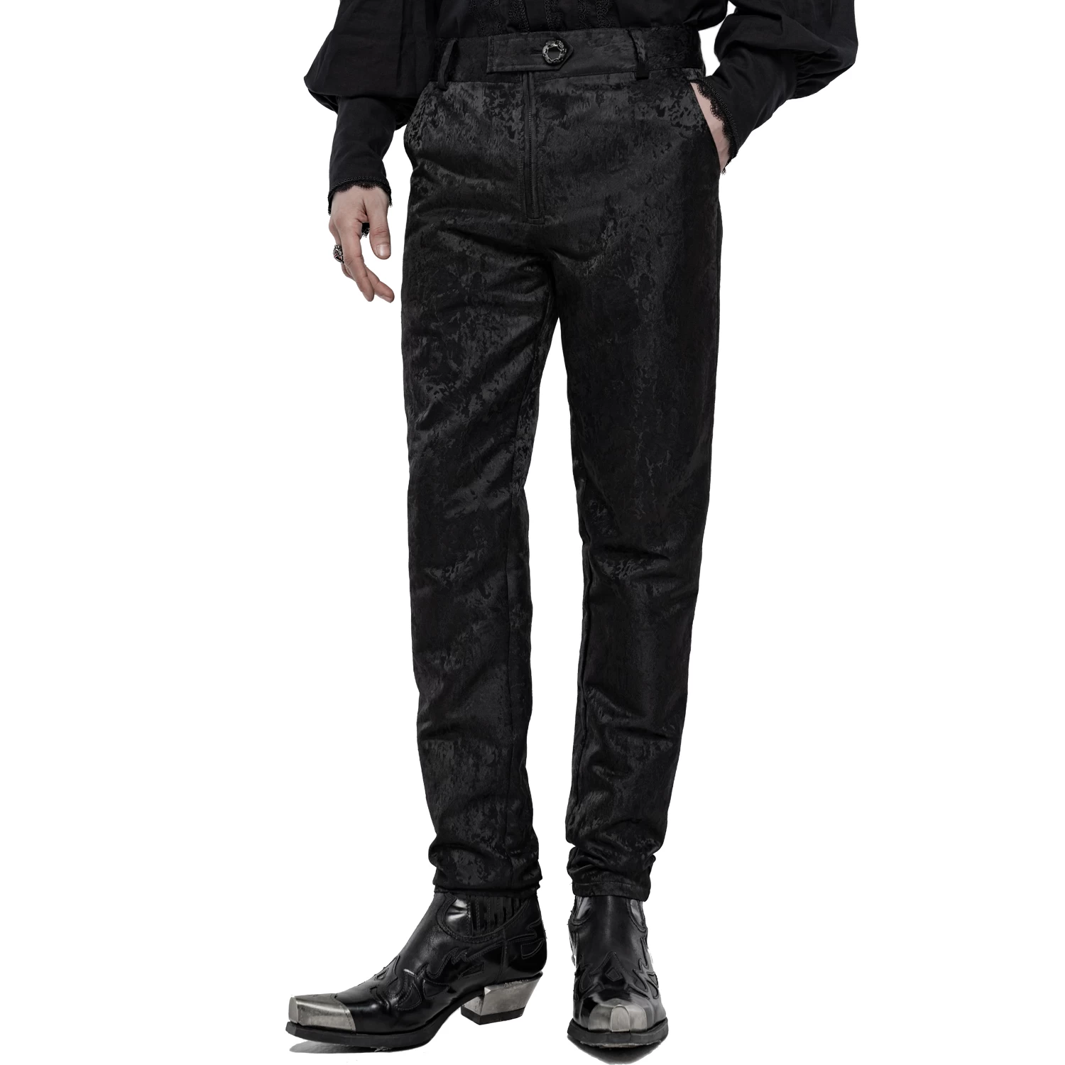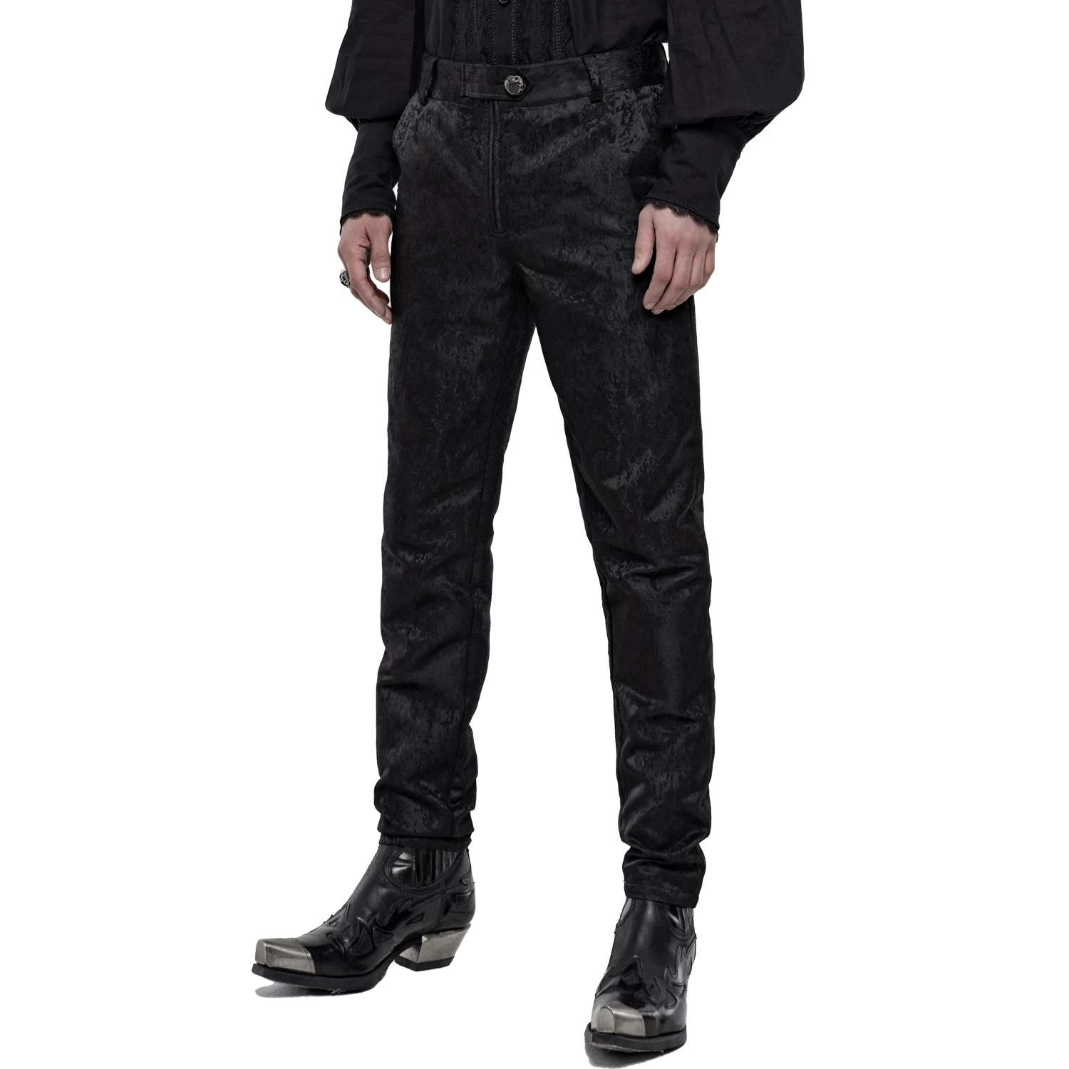 Pantalon ajusté en jacquard satiné noir de style gothique victorien