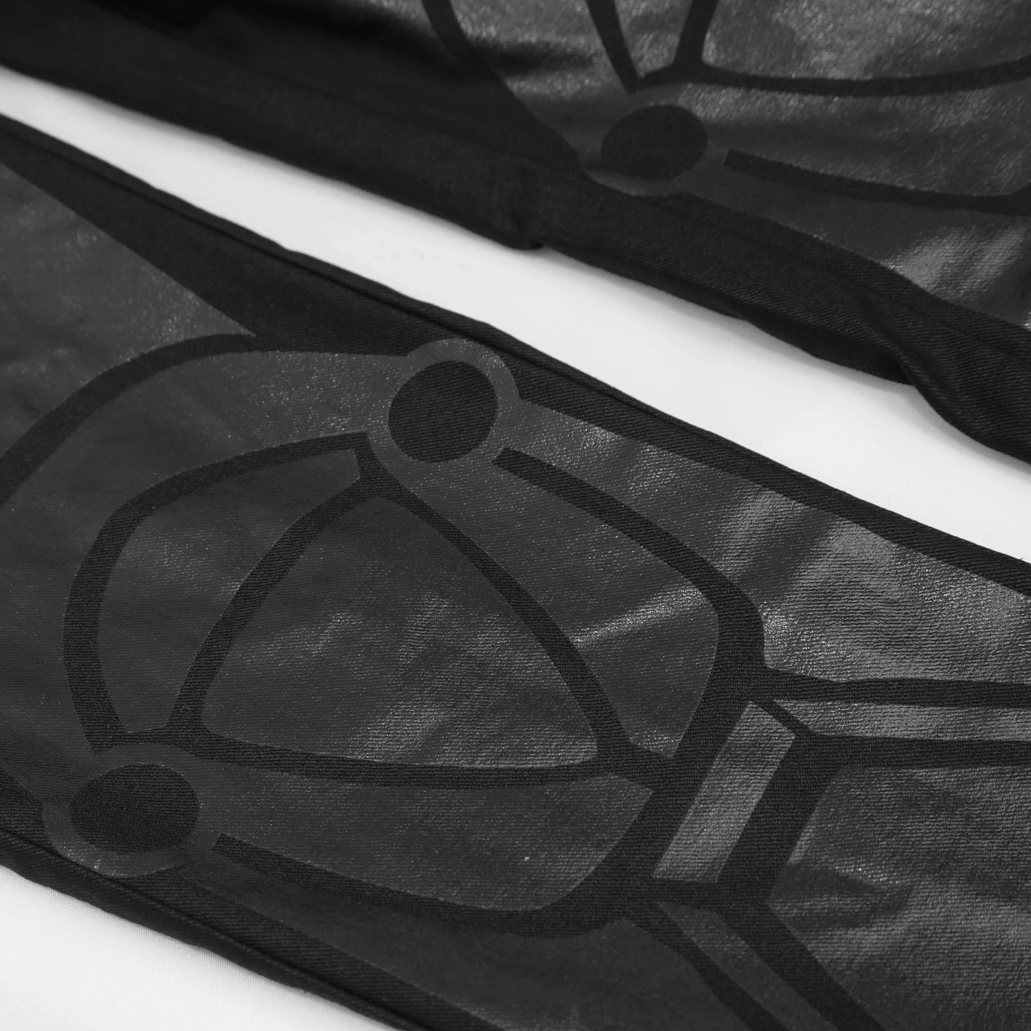 Pantalon skinny classique avec motif d’armure de robot original et brillant sur tissu extensible noir
