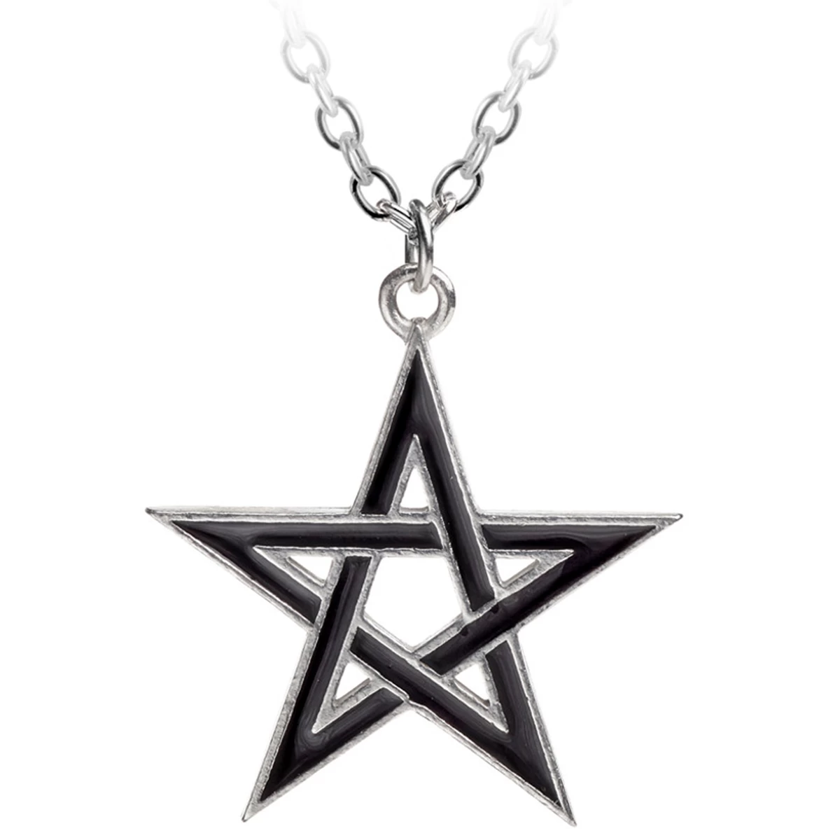 • Un pendentif pentagramme de taille moyenne en étain émaillé noir.