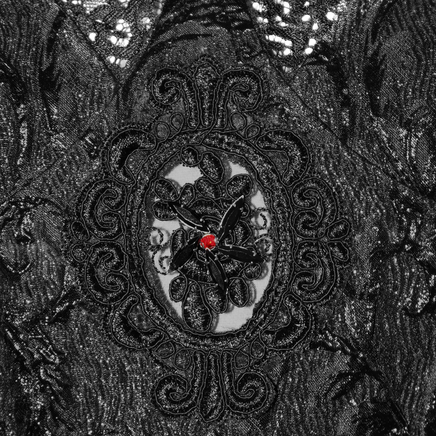 • Ornement rond en dentelle et broderies avec strass rouge sur le buste