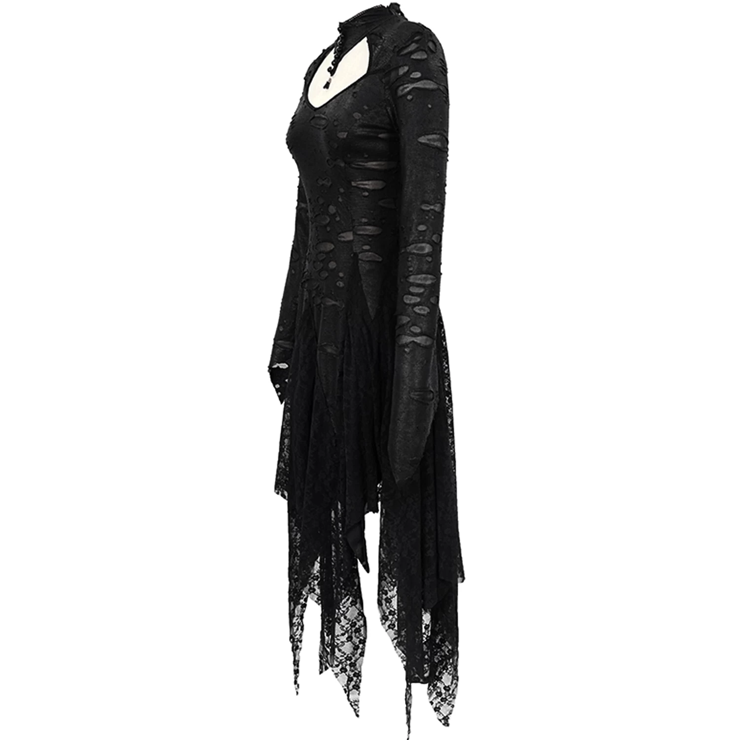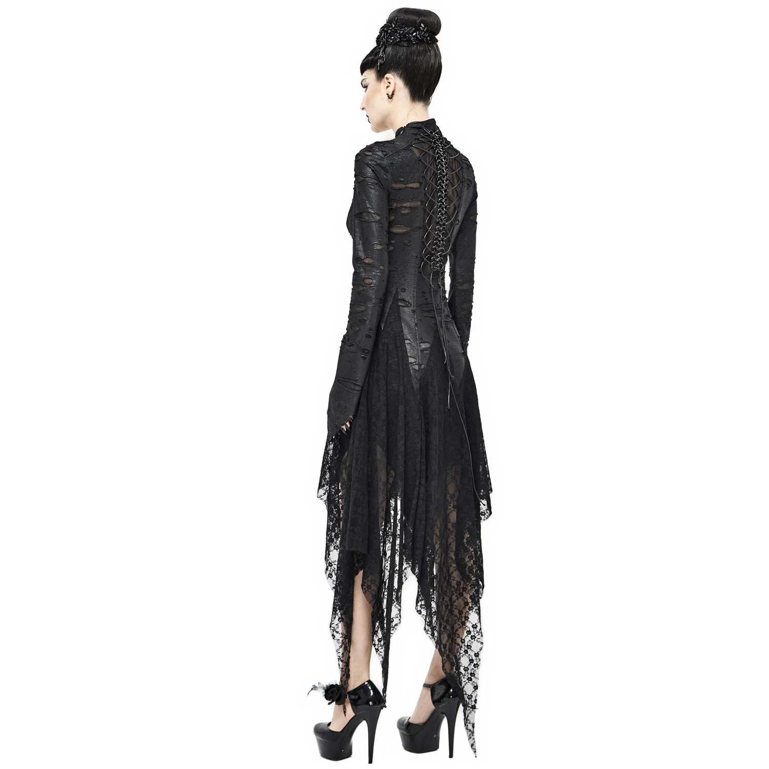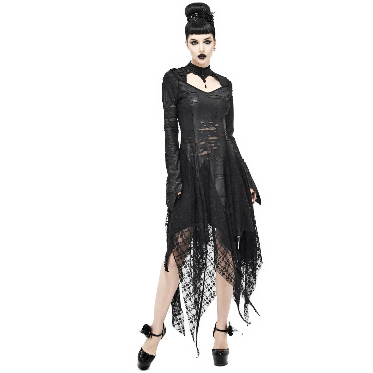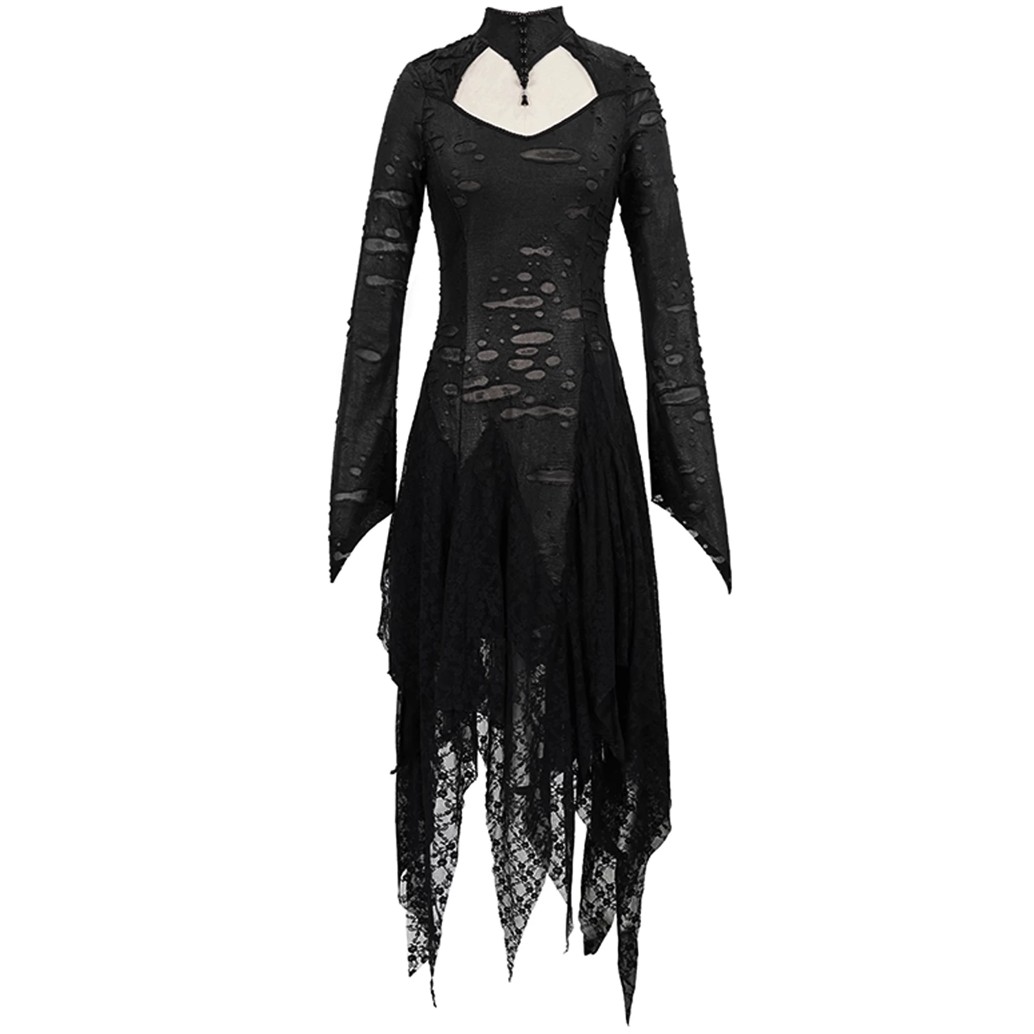 ⹠Manches longues et évasées avec poignets pointus et ourlets irréguliers
