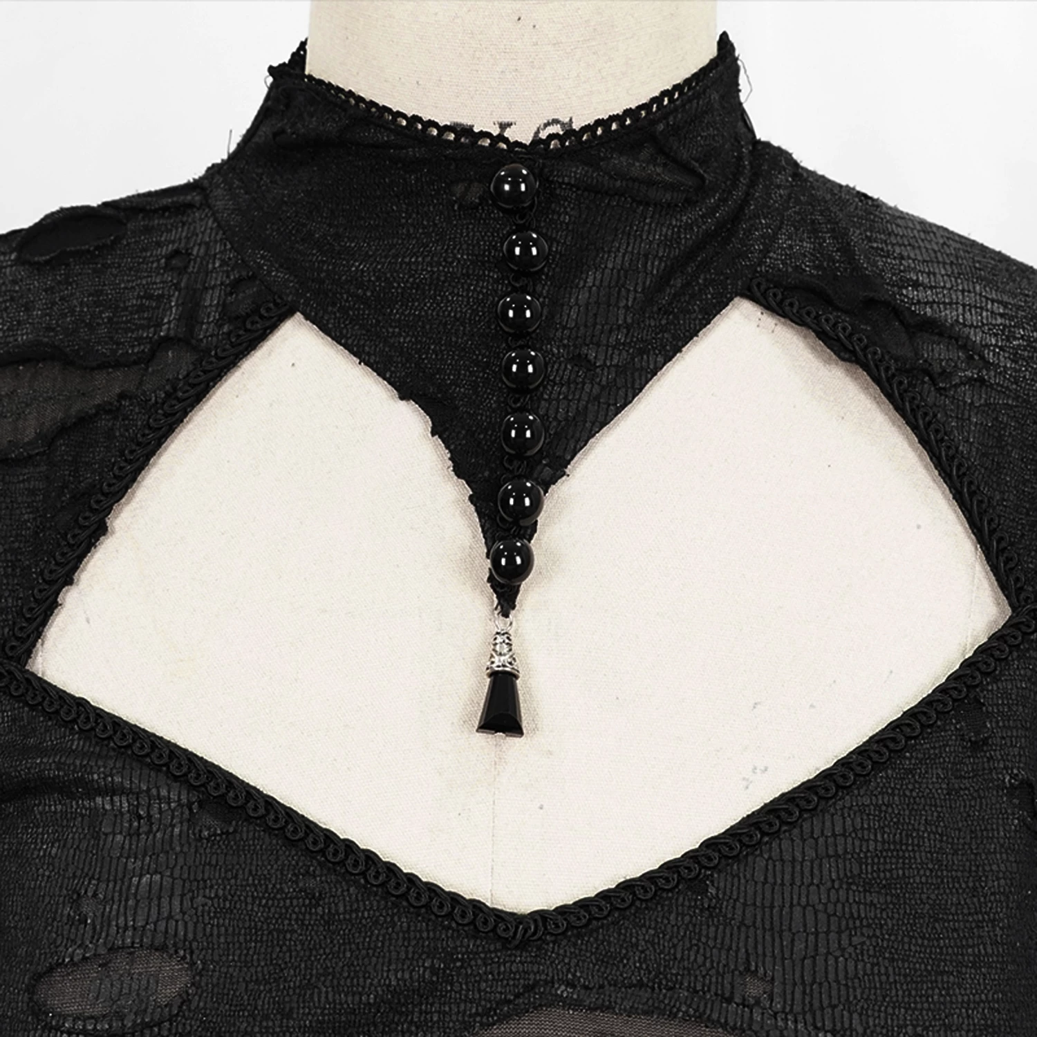 ⹠Col façon choker avec sept perles noires et terminé par une pierre noire