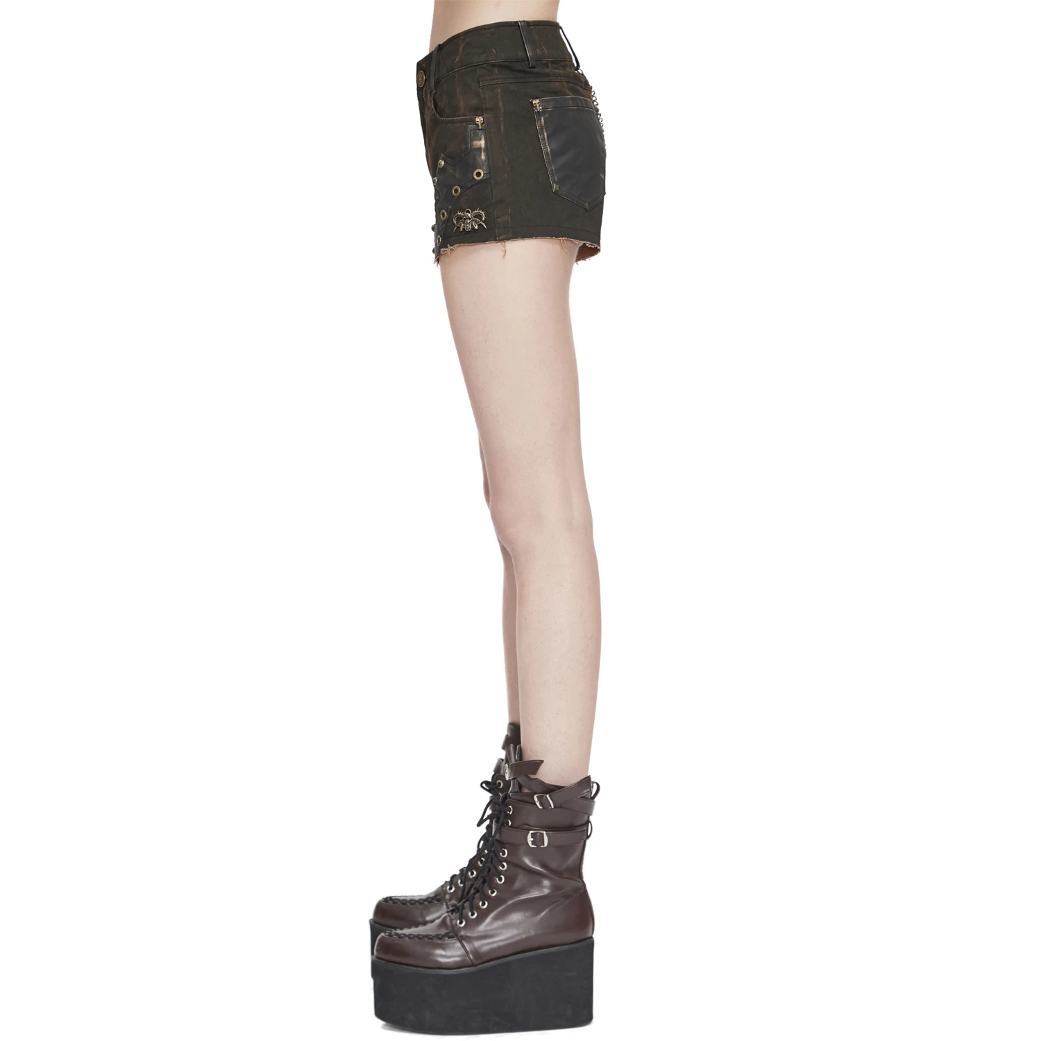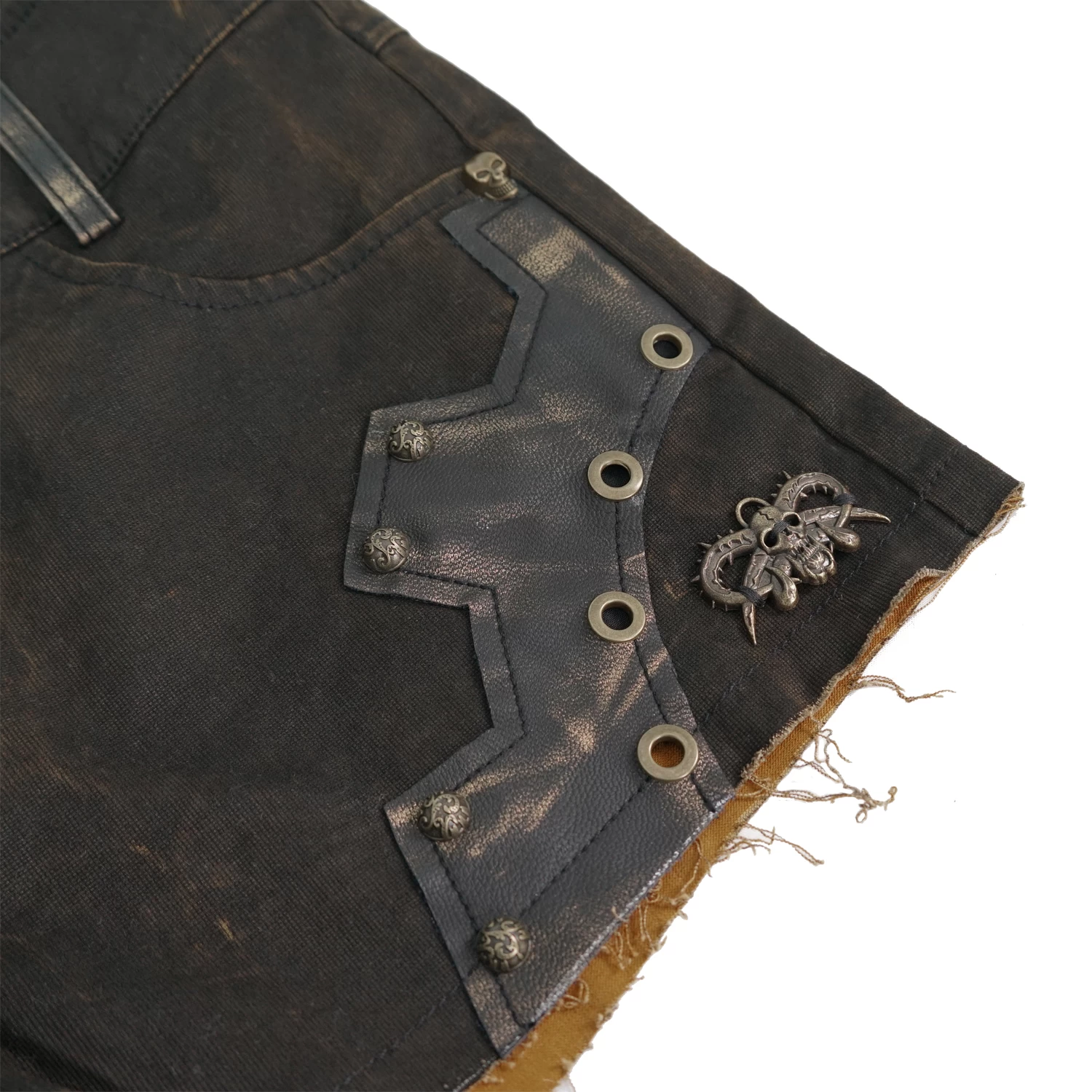 • Le simili cuir des deux côtés des jambes est brûlé et coupé