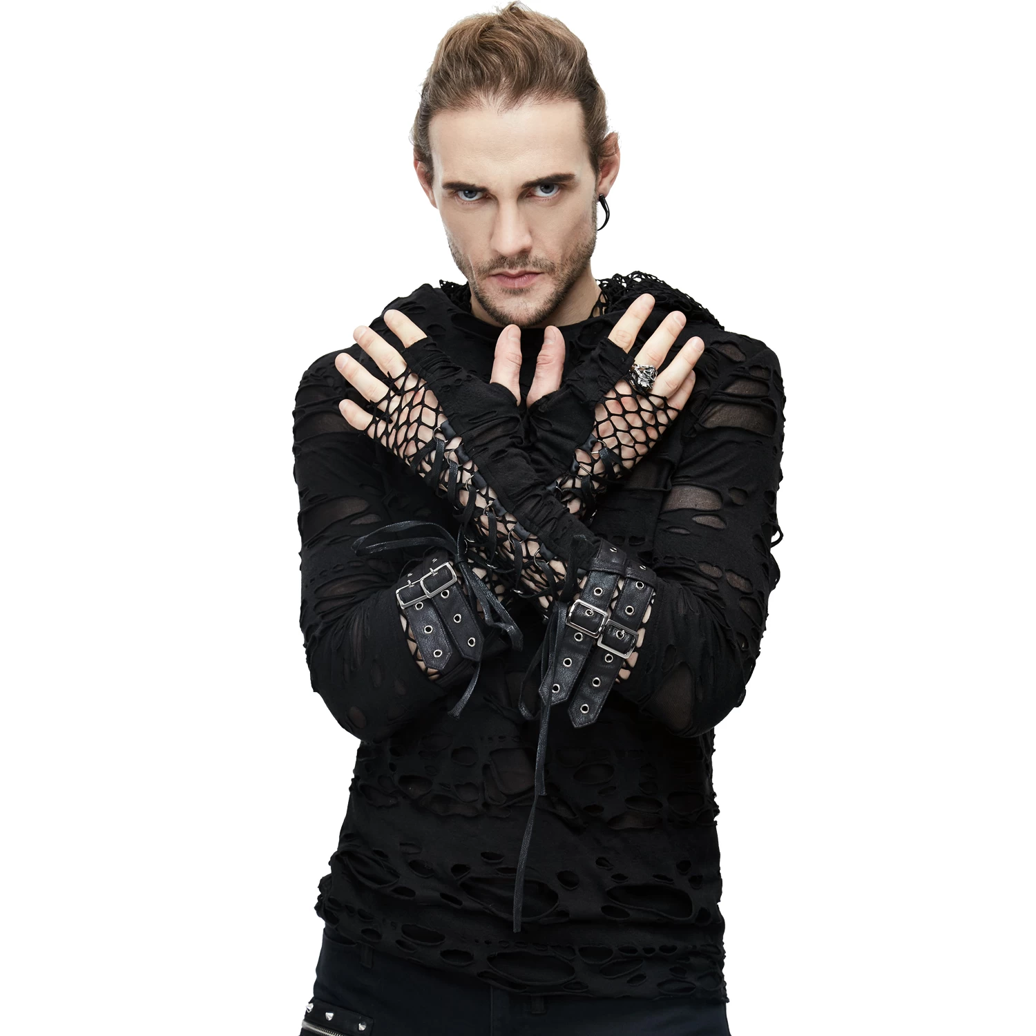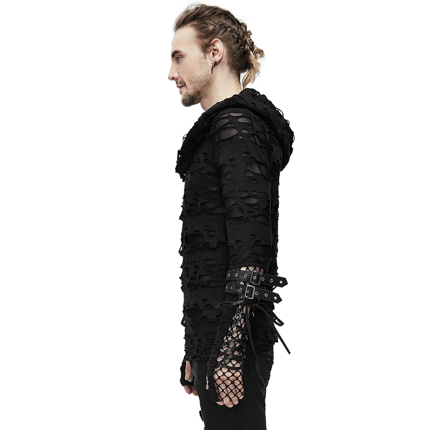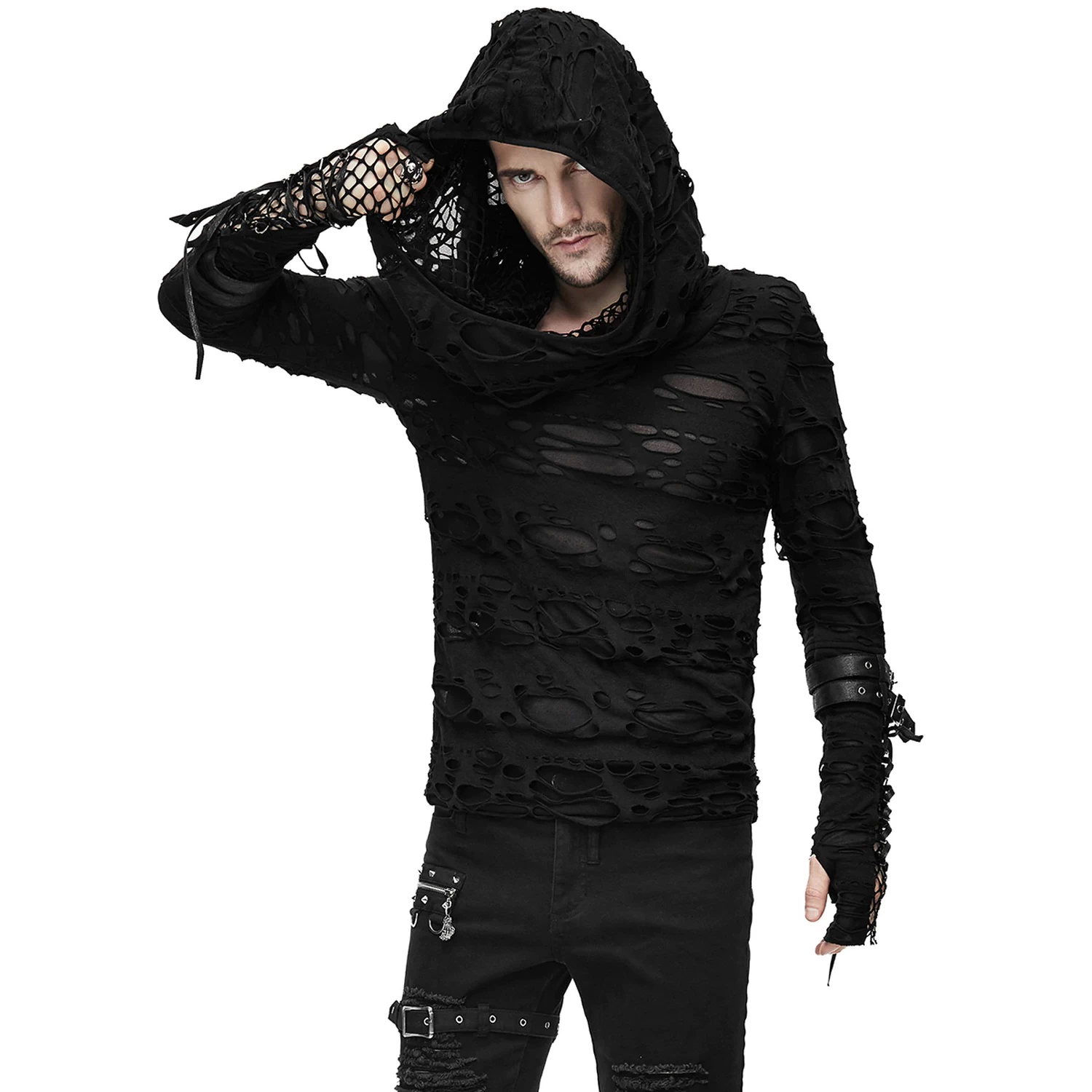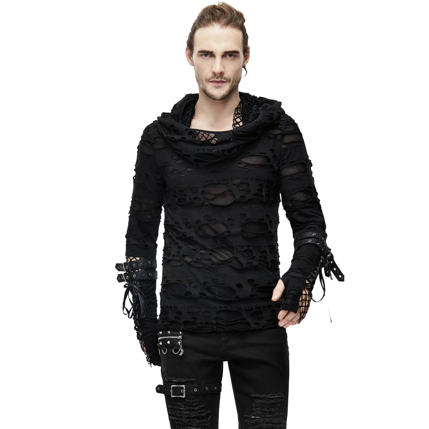Top de style post apocalyptique à capuche et manches longues pour hommes