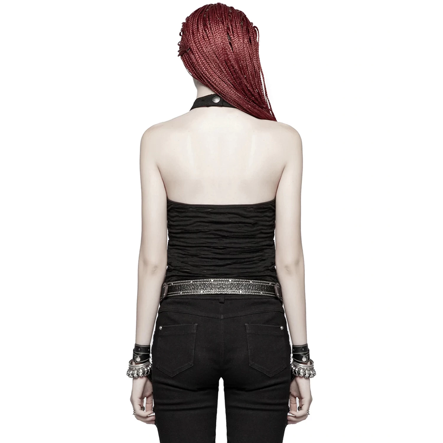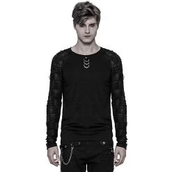 T-shirt noir Ă col licou de style gothique post apocalyptique pour femmes