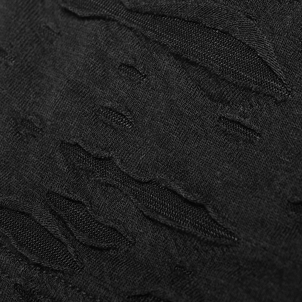 ⹠En polyester noir, extensible, partiellement transparent et vieilli laissant apparaßtre une résille en sous couche