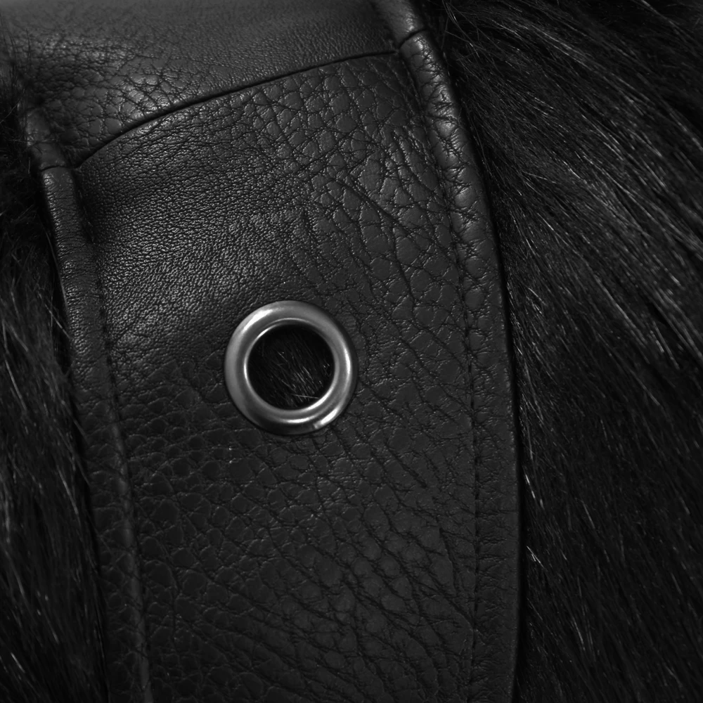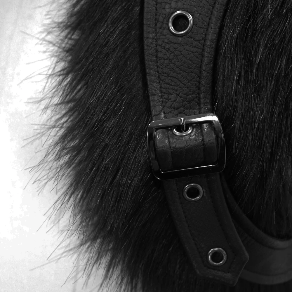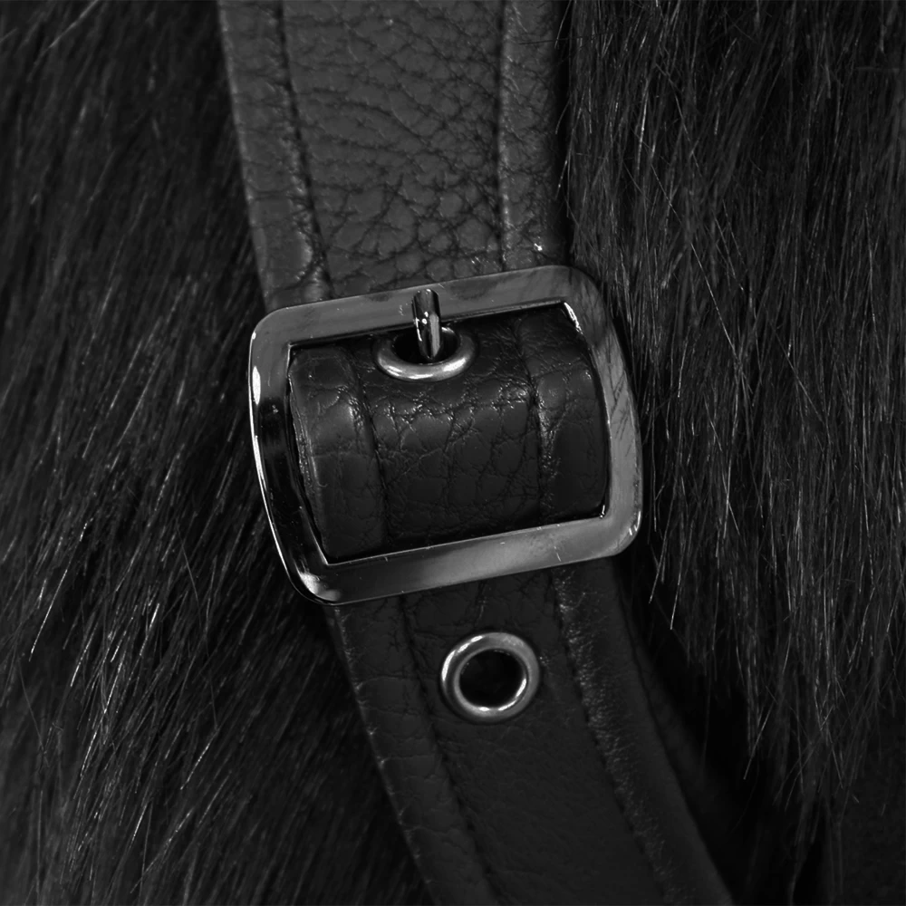 • Harnais ajustable et amovible en simili cuir, avec une épaisse bordure en fausse fourrure