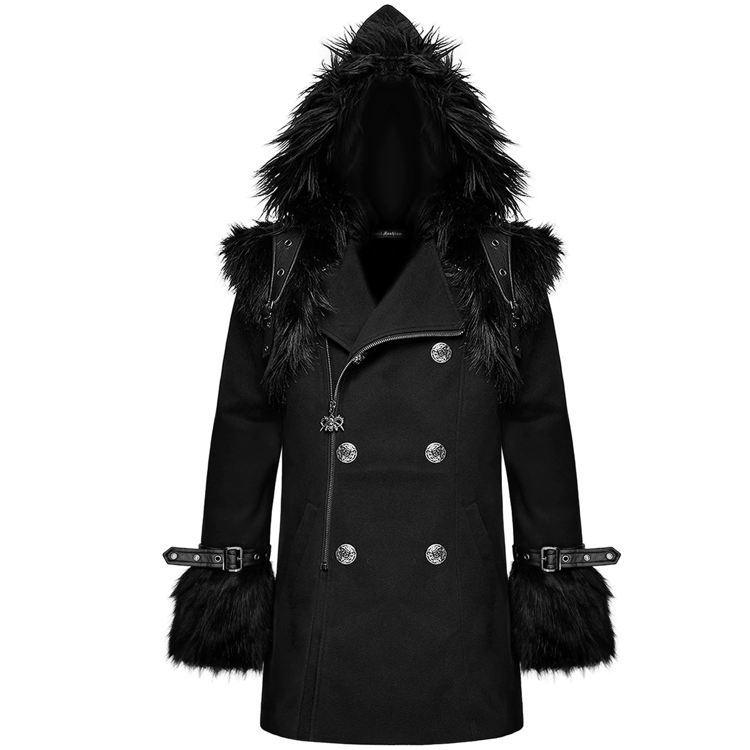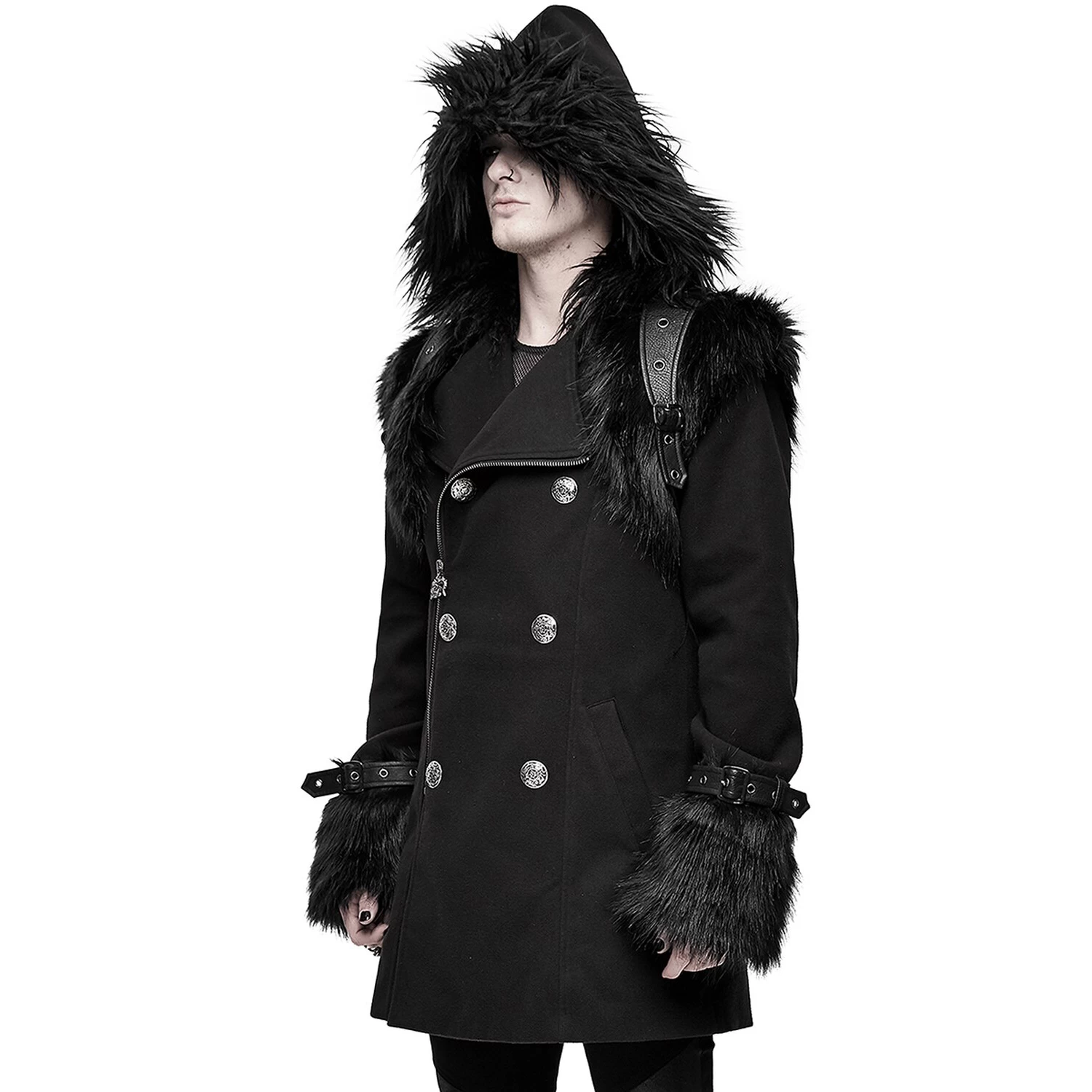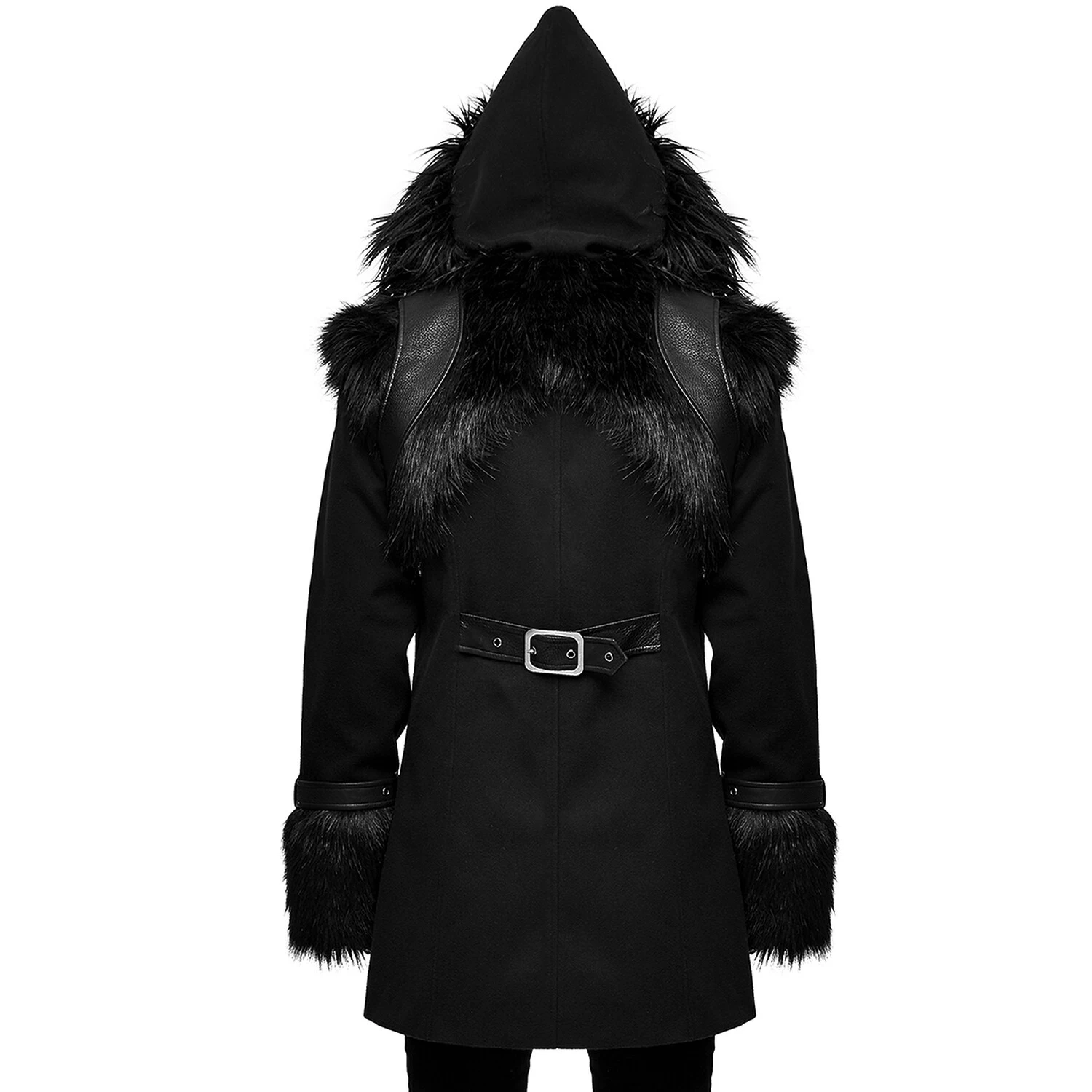 • Capuche surdimensionnée et pointue avec une large bordure en fausse fourrure noire