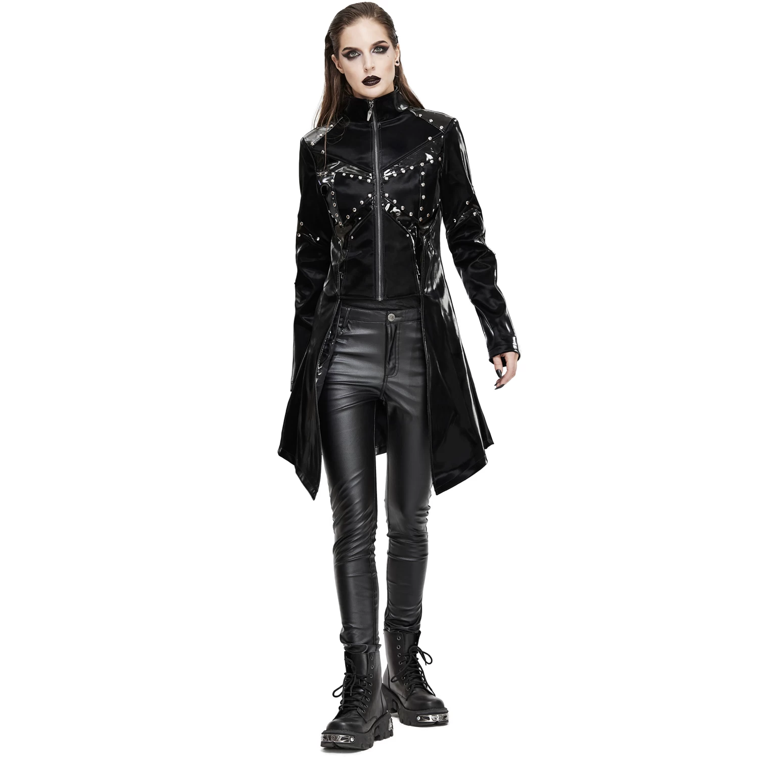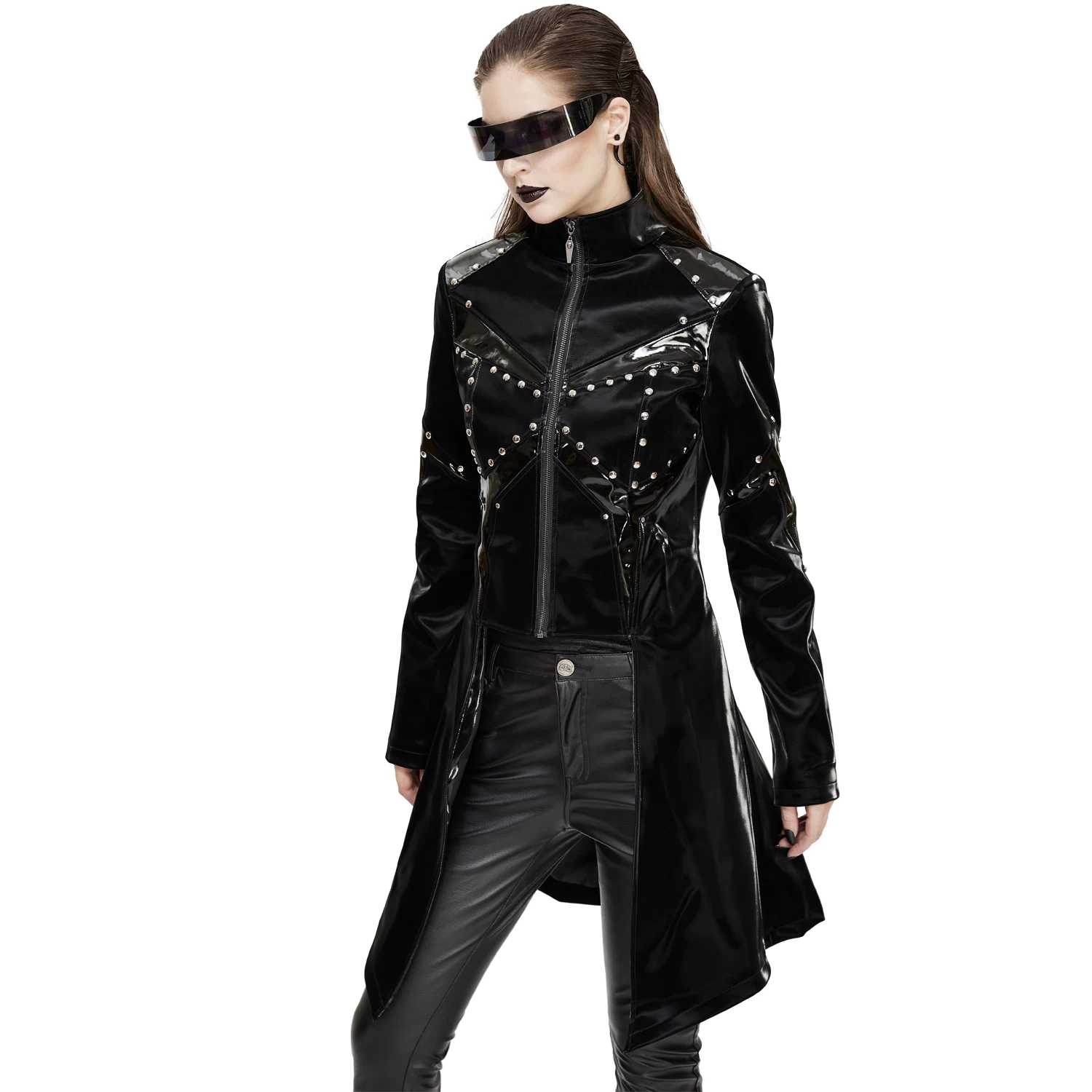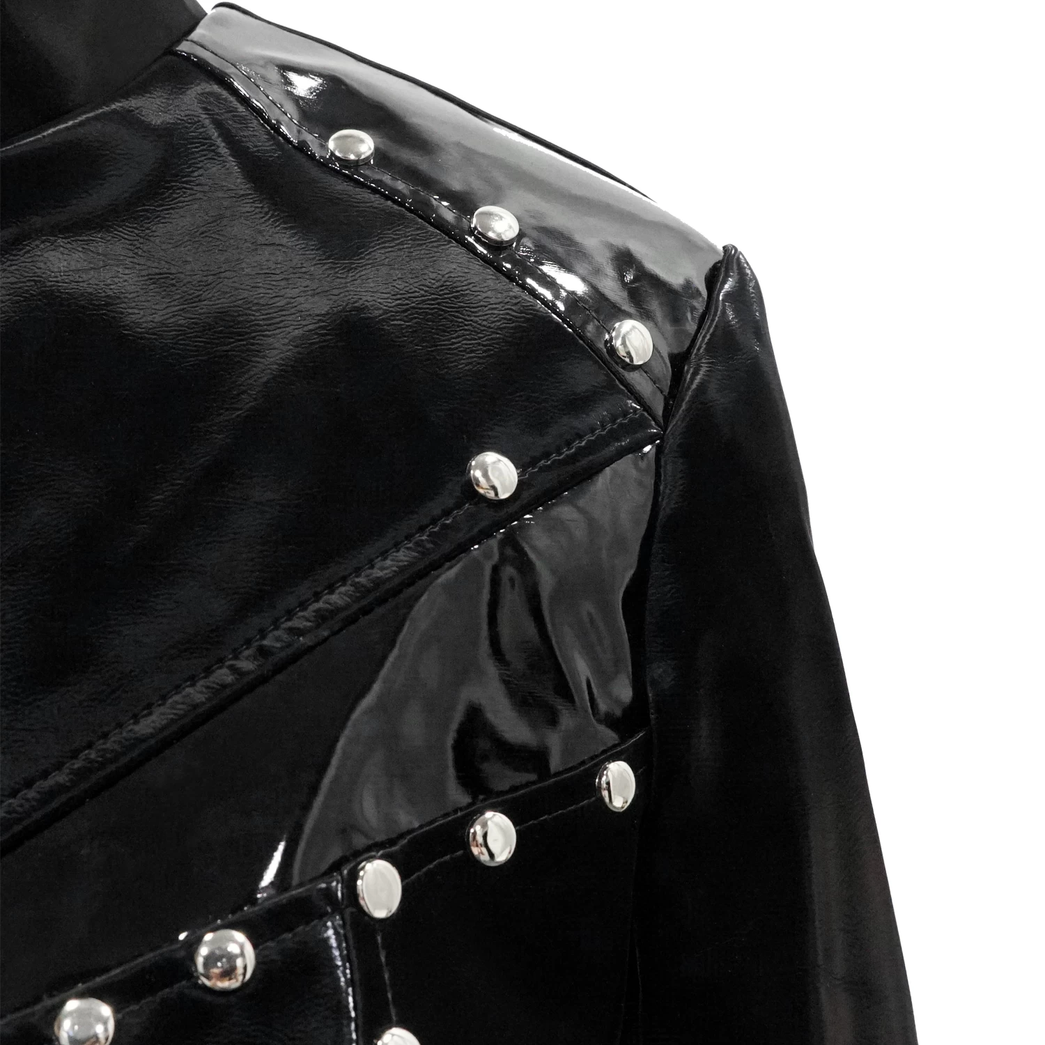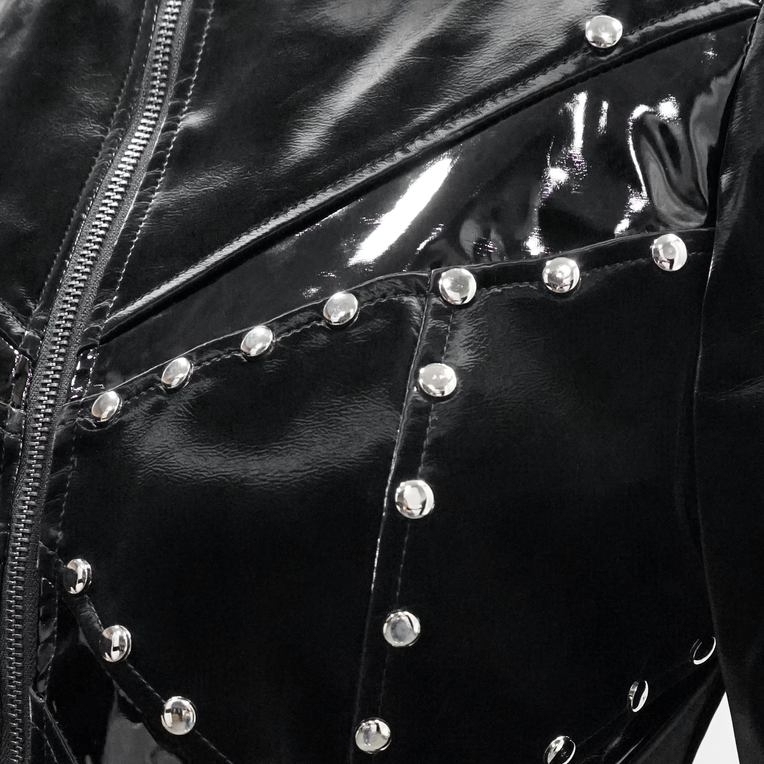 Veste ajustĂ©e en simili cuir noir brillant d’inspiration Cyberpunk