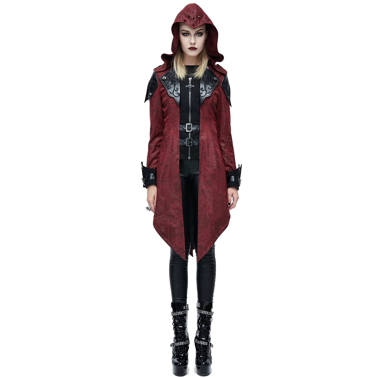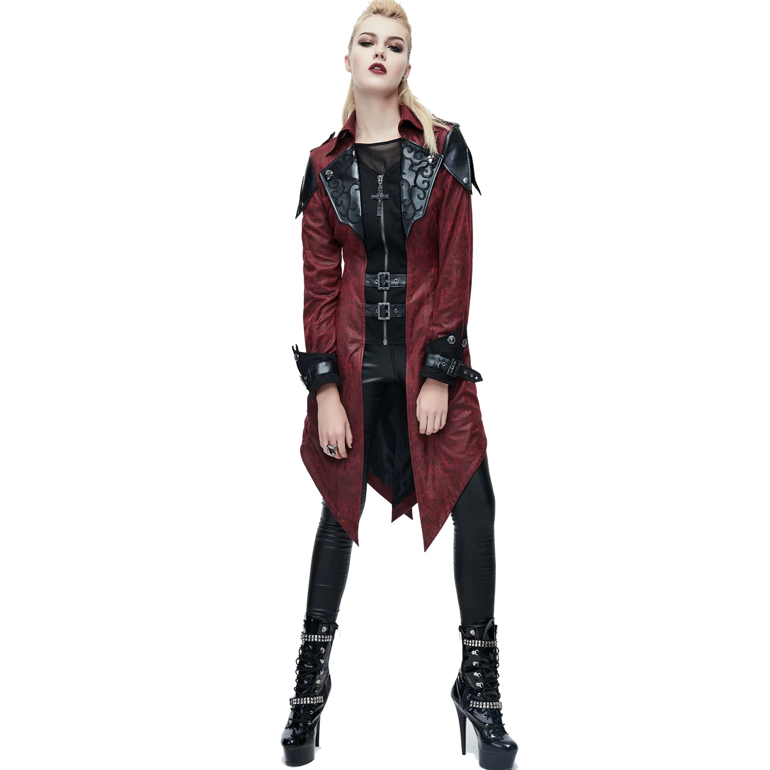 Veste de style post apocalyptique en polyester rouge et simili cuir noir