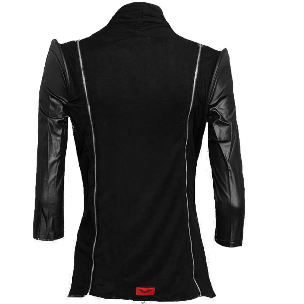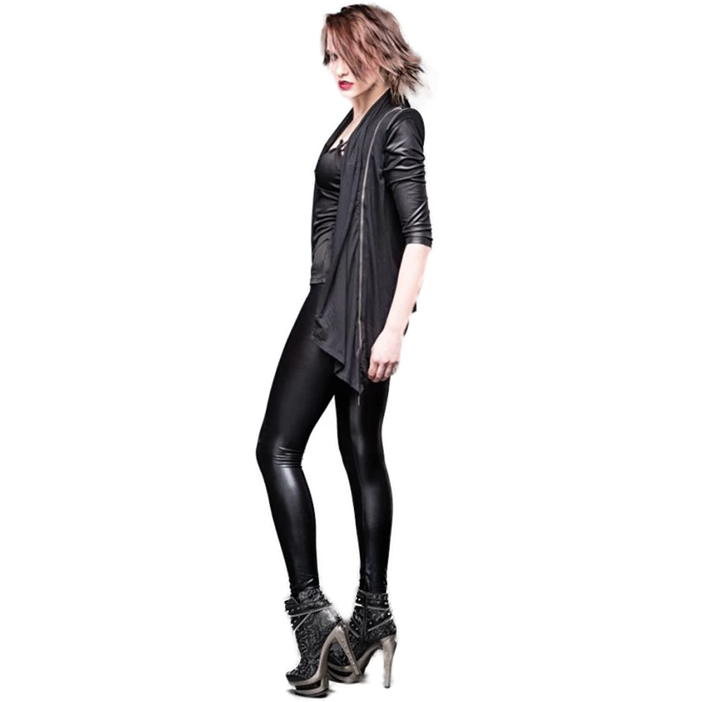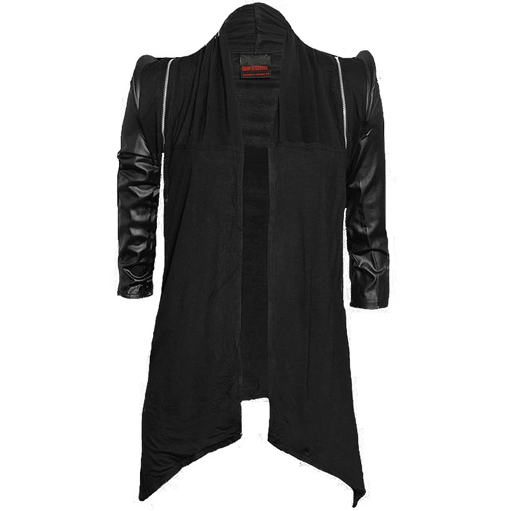 Cette veste originale a des manches en similicuir, épaules accentuées et col châle.