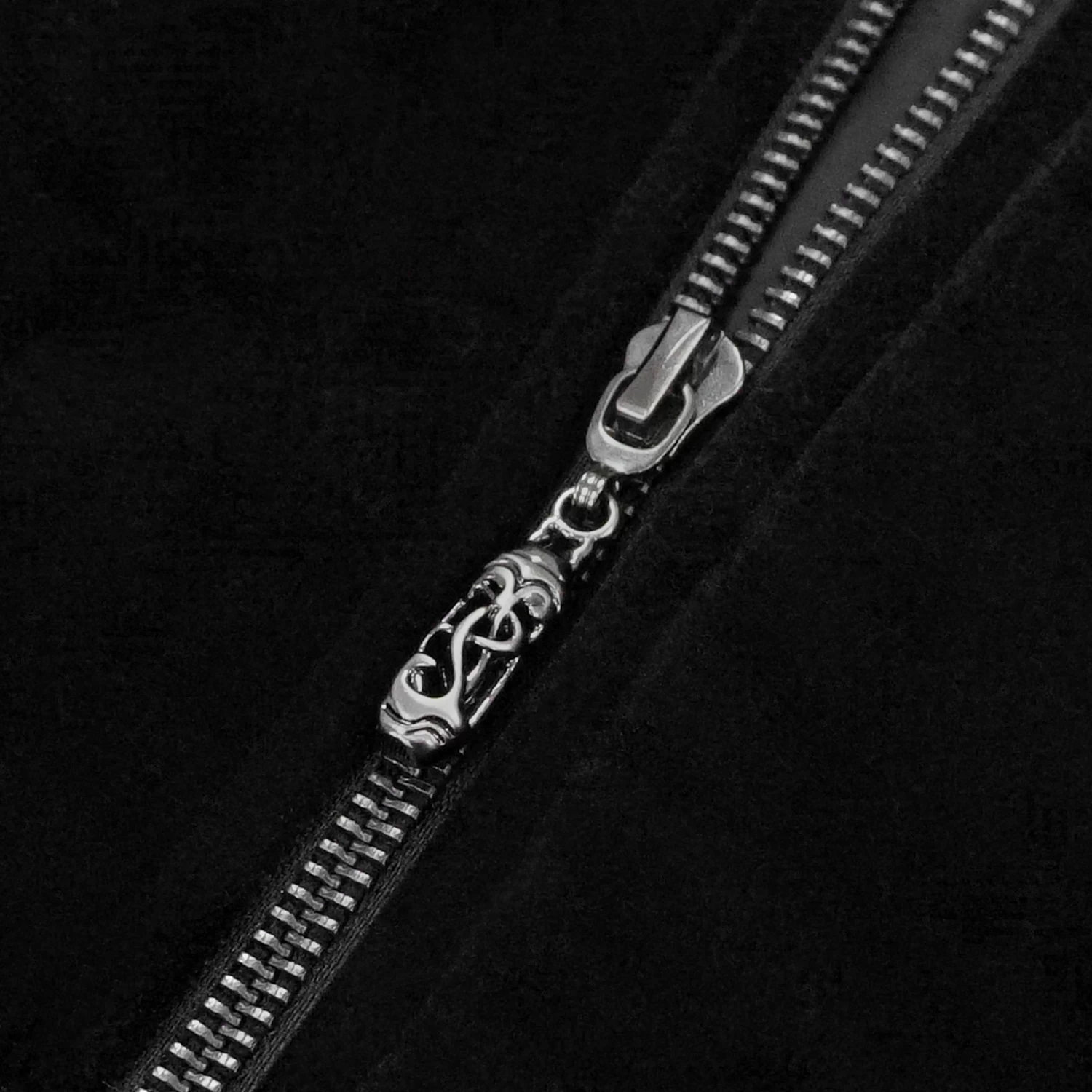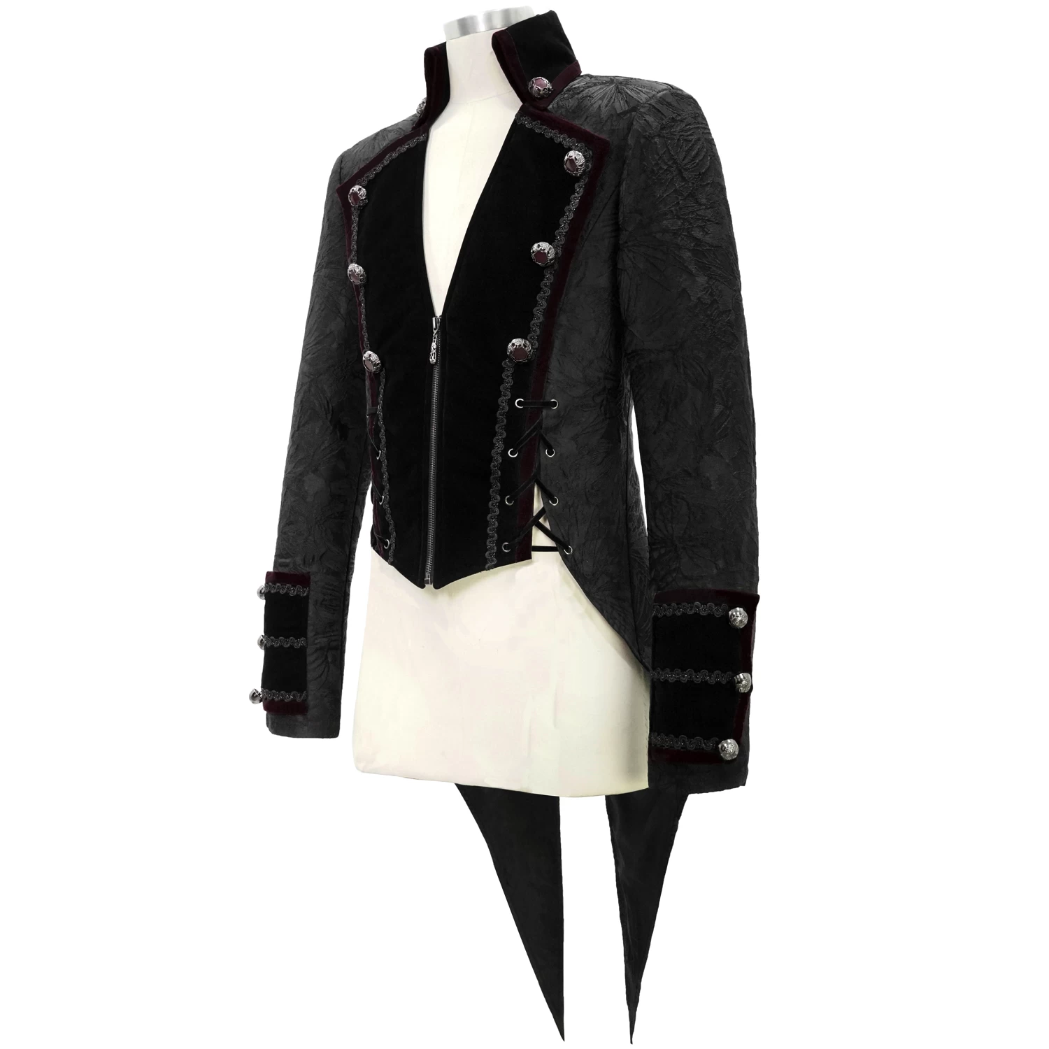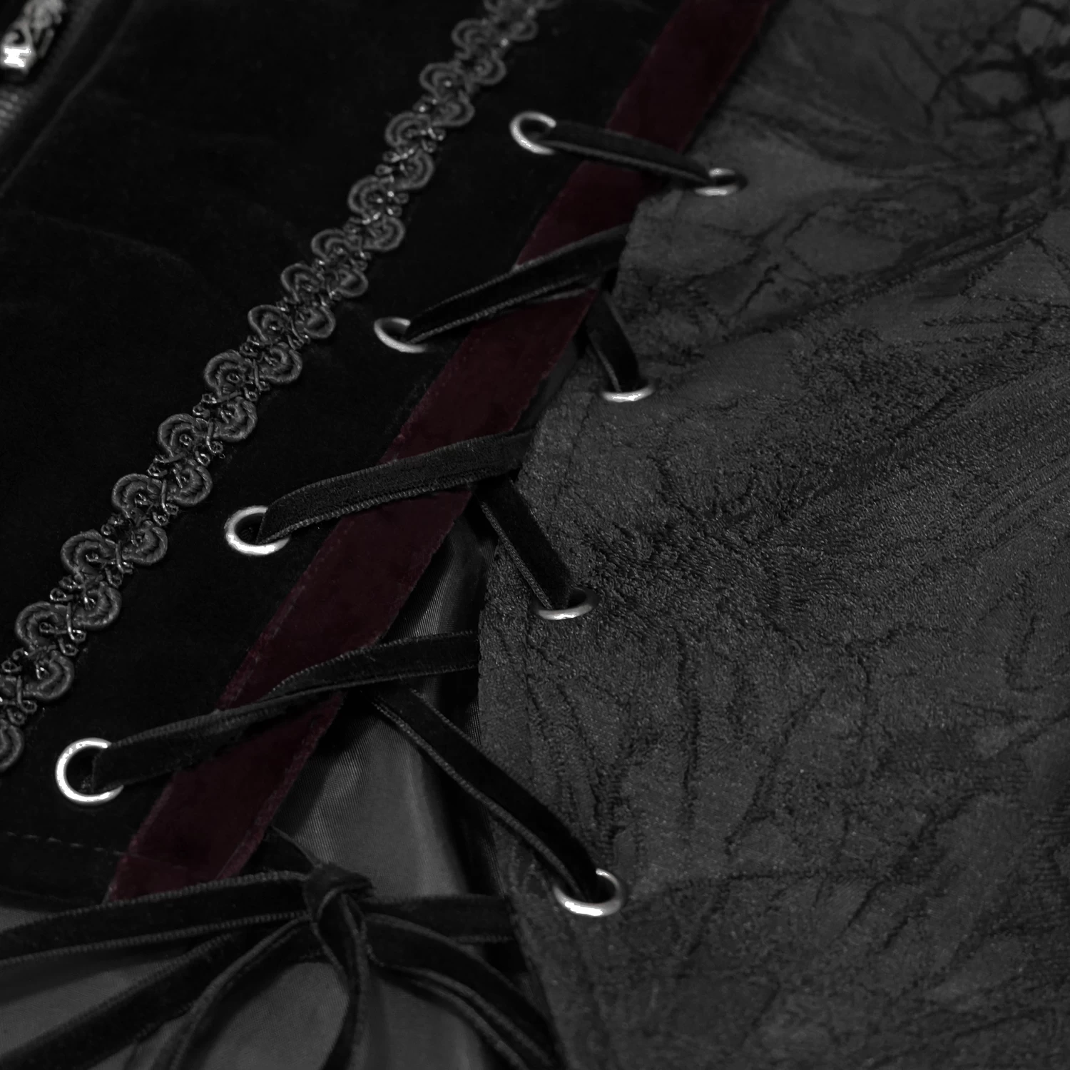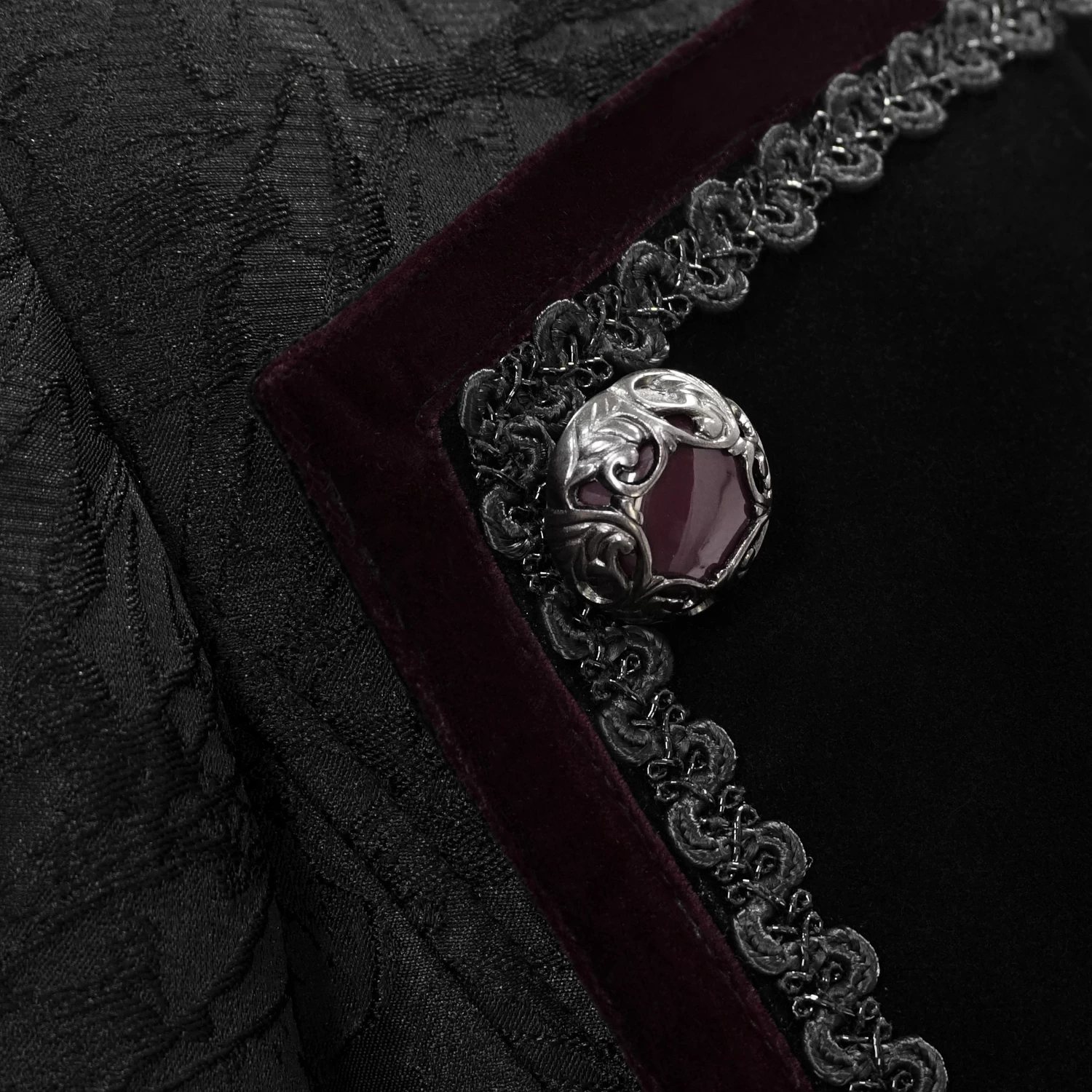 ⹠Poignets agrémentés de dentelle noire, velours noir et bordeaux avec trois boutons métalliques gravés