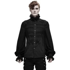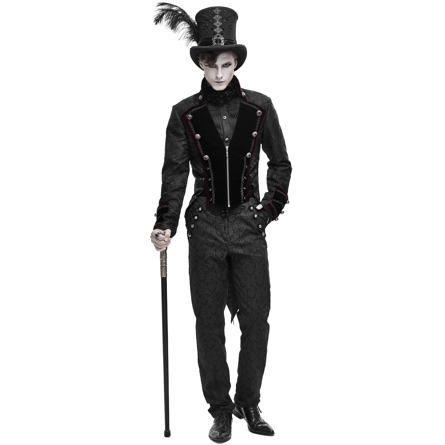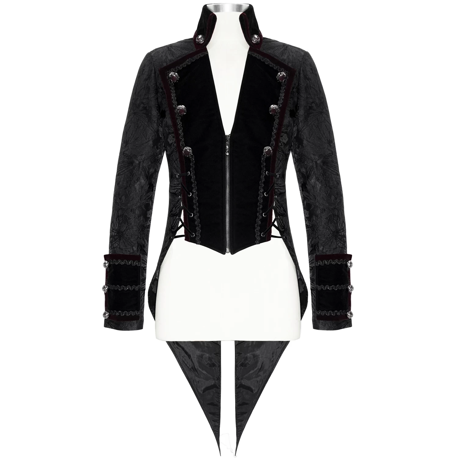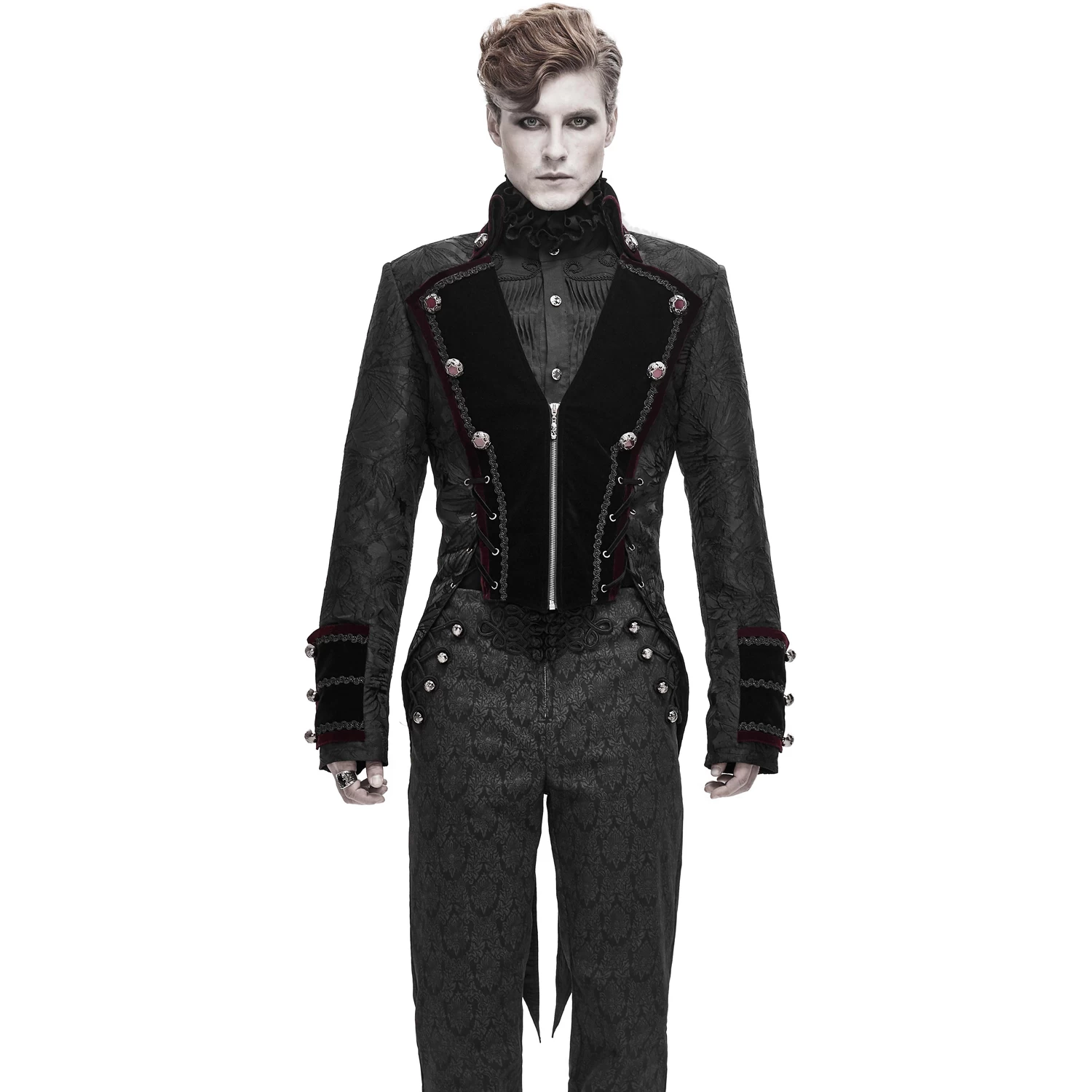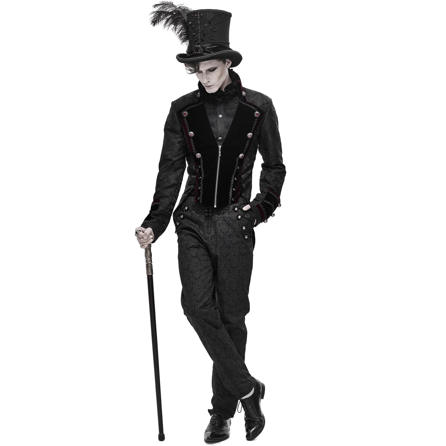 ⹠Poignets agrémentés de dentelle noire, velours noir et bordeaux avec trois boutons métalliques gravés